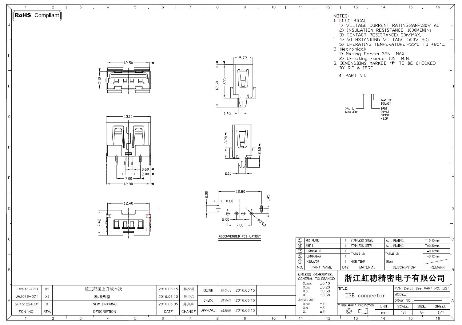 Product name:  USB 2.0 Jack connector