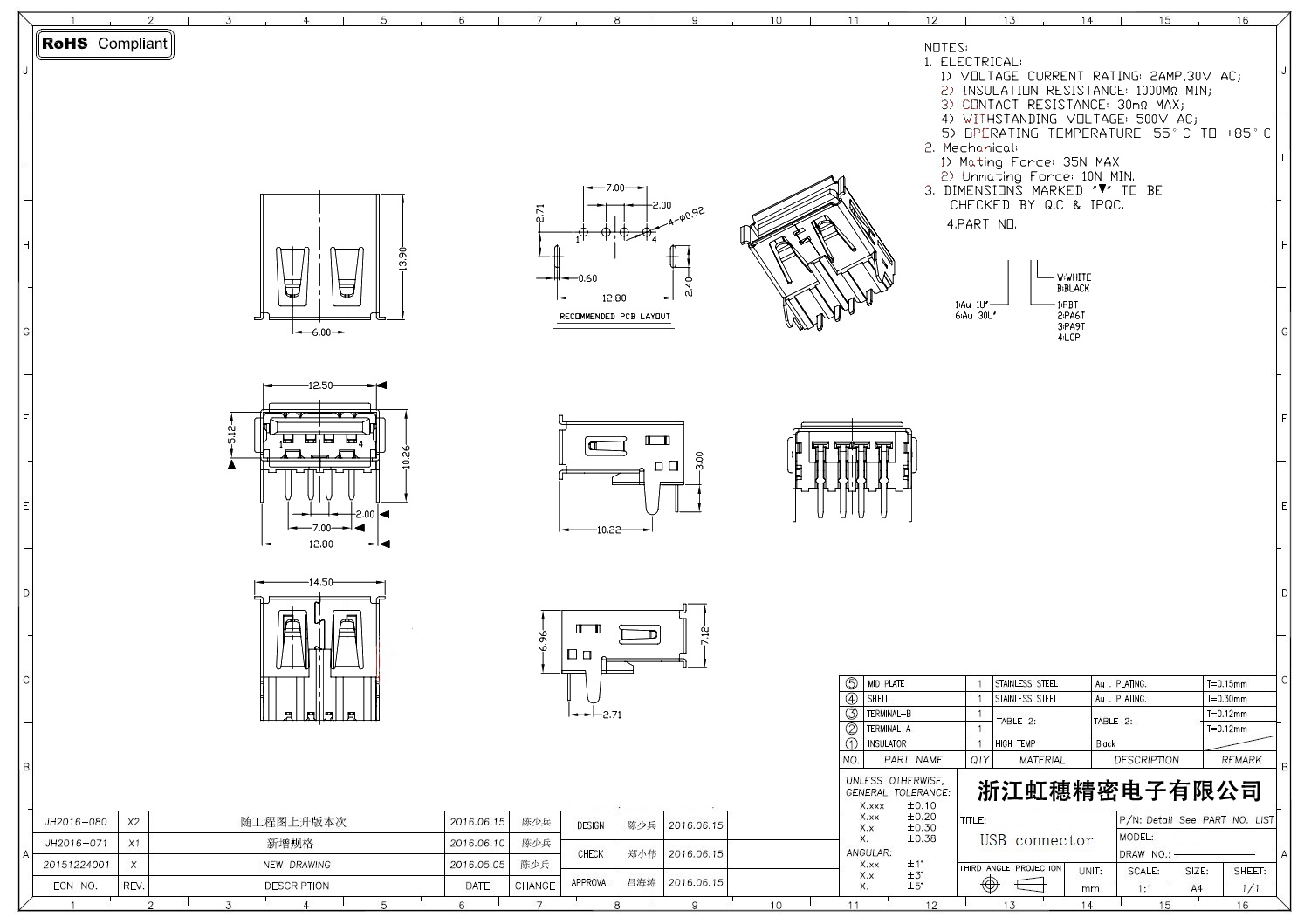 Product name:  USB 2.0 Jack connector