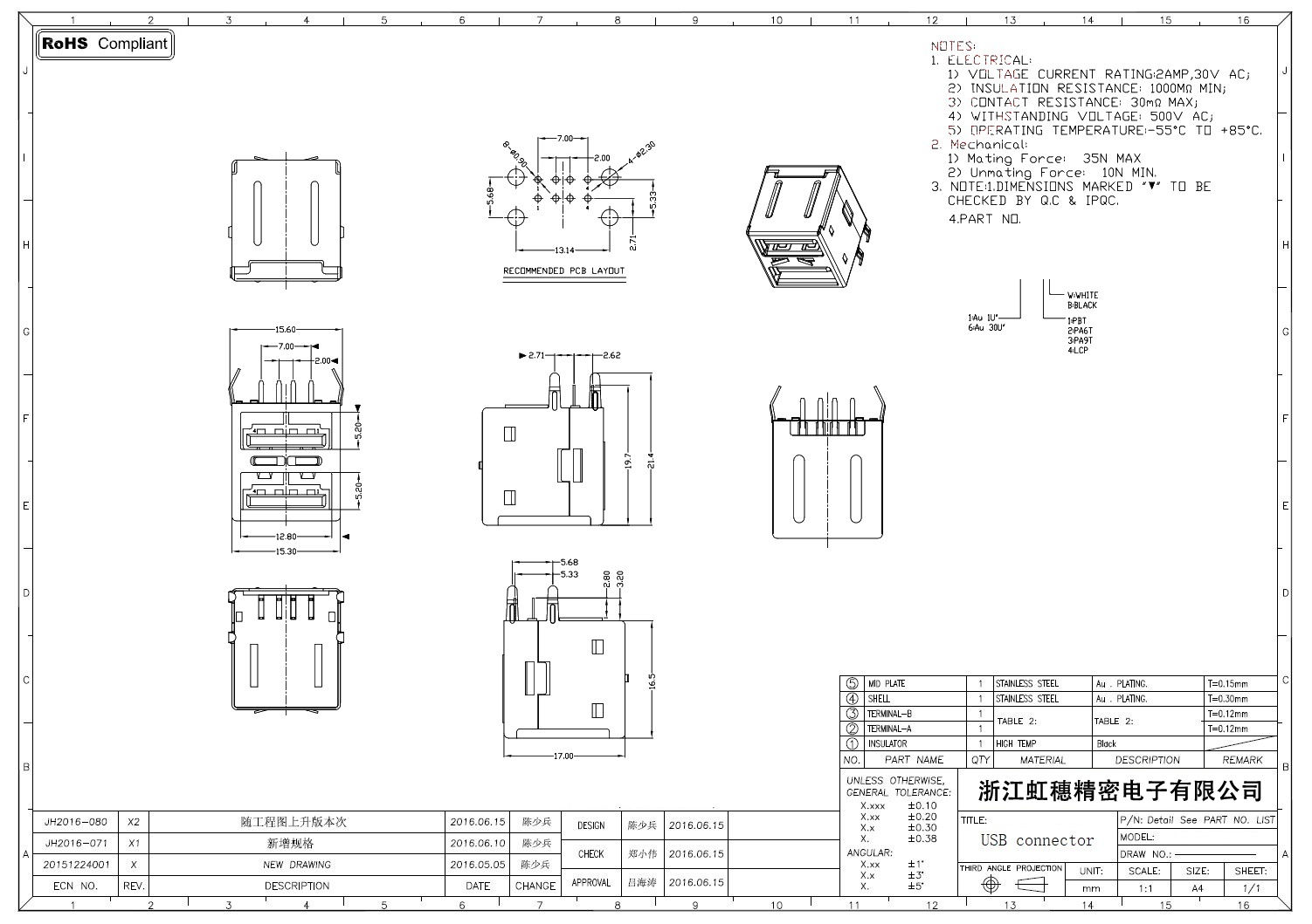 Product name:  USB 2.0 Jack connector