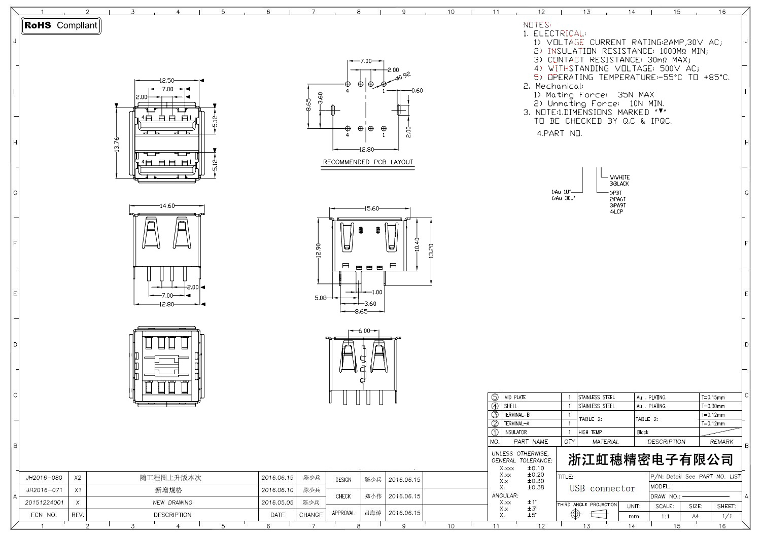 Product name:  USB 2.0 Jack connector