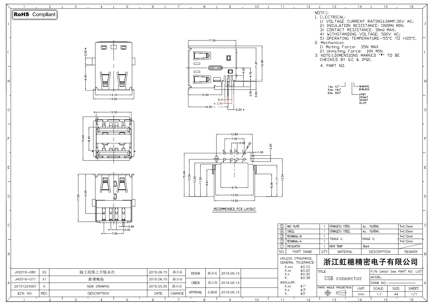 Product name:  USB 2.0 Jack connector