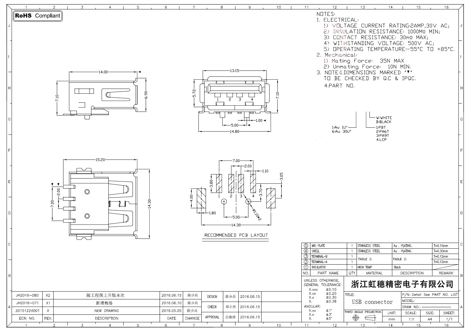Product name:  USB 2.0 Jack connector
