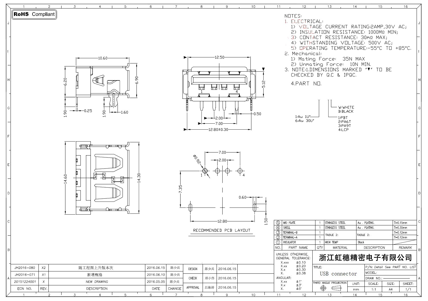 Product name:  USB 2.0 Jack connector