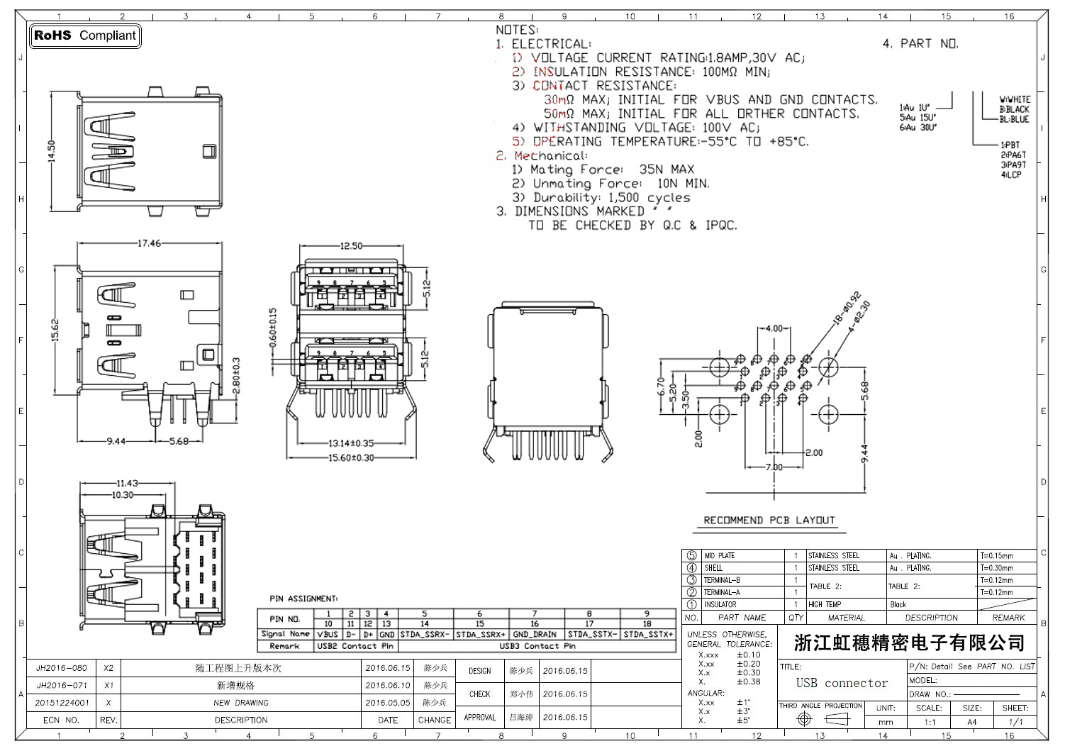 3.0USB插座技術參數(shù):