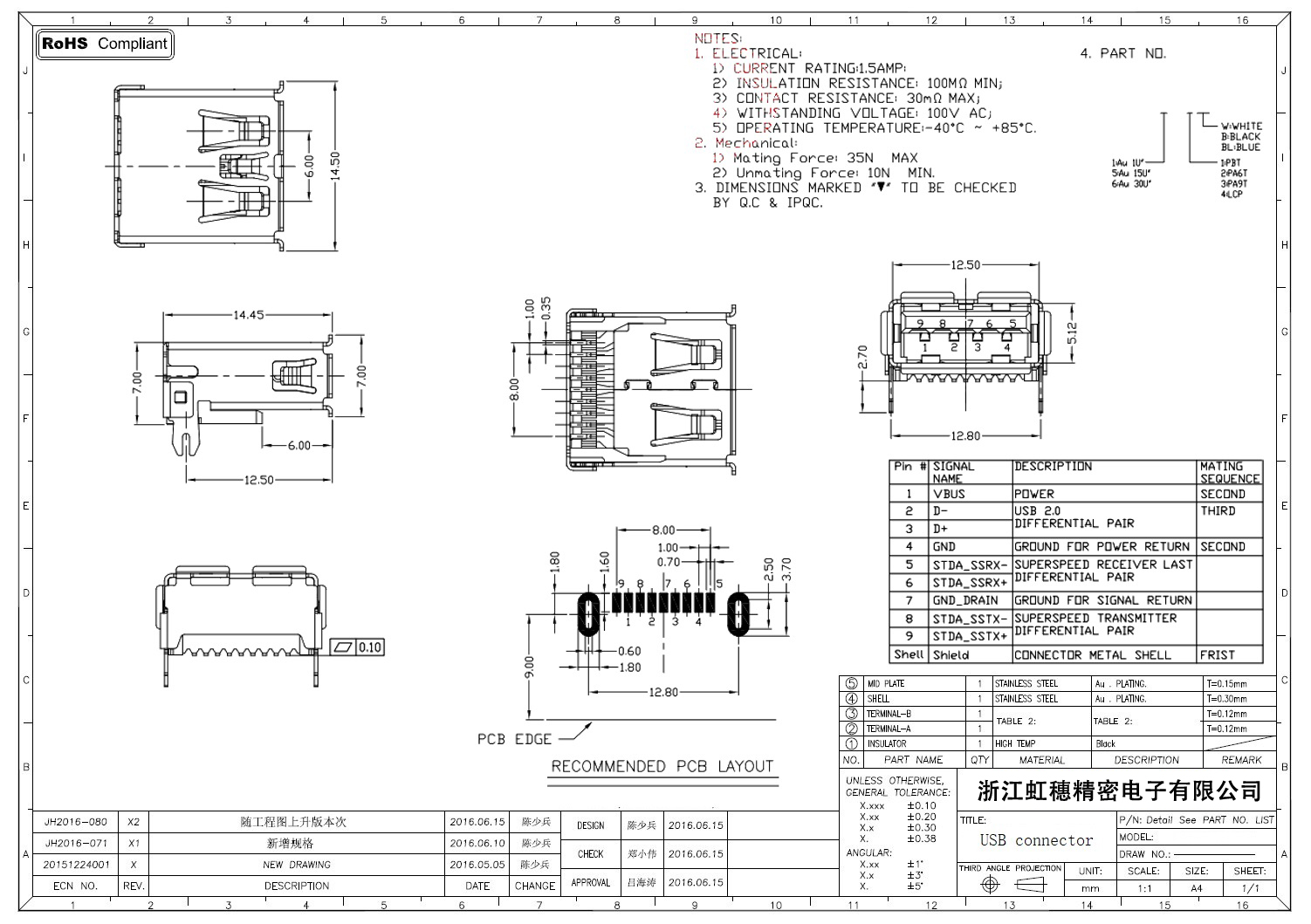 3.0USB插座技術參數: