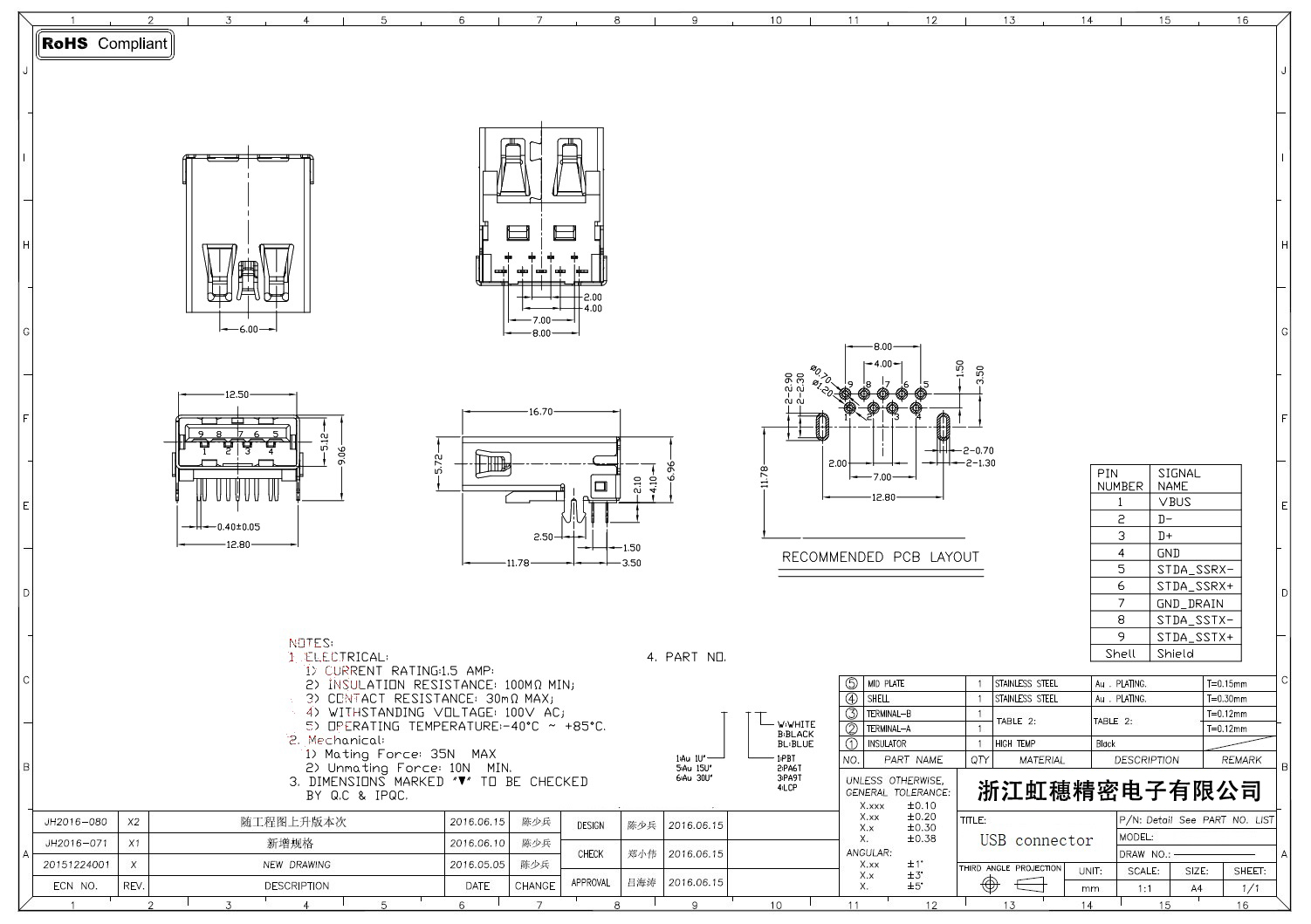 6.插拔壽命:10,000 Cycles