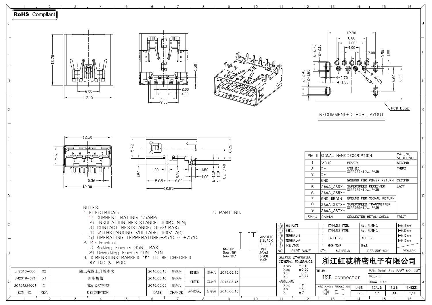 3.0USB插座技術(shù)參數(shù):