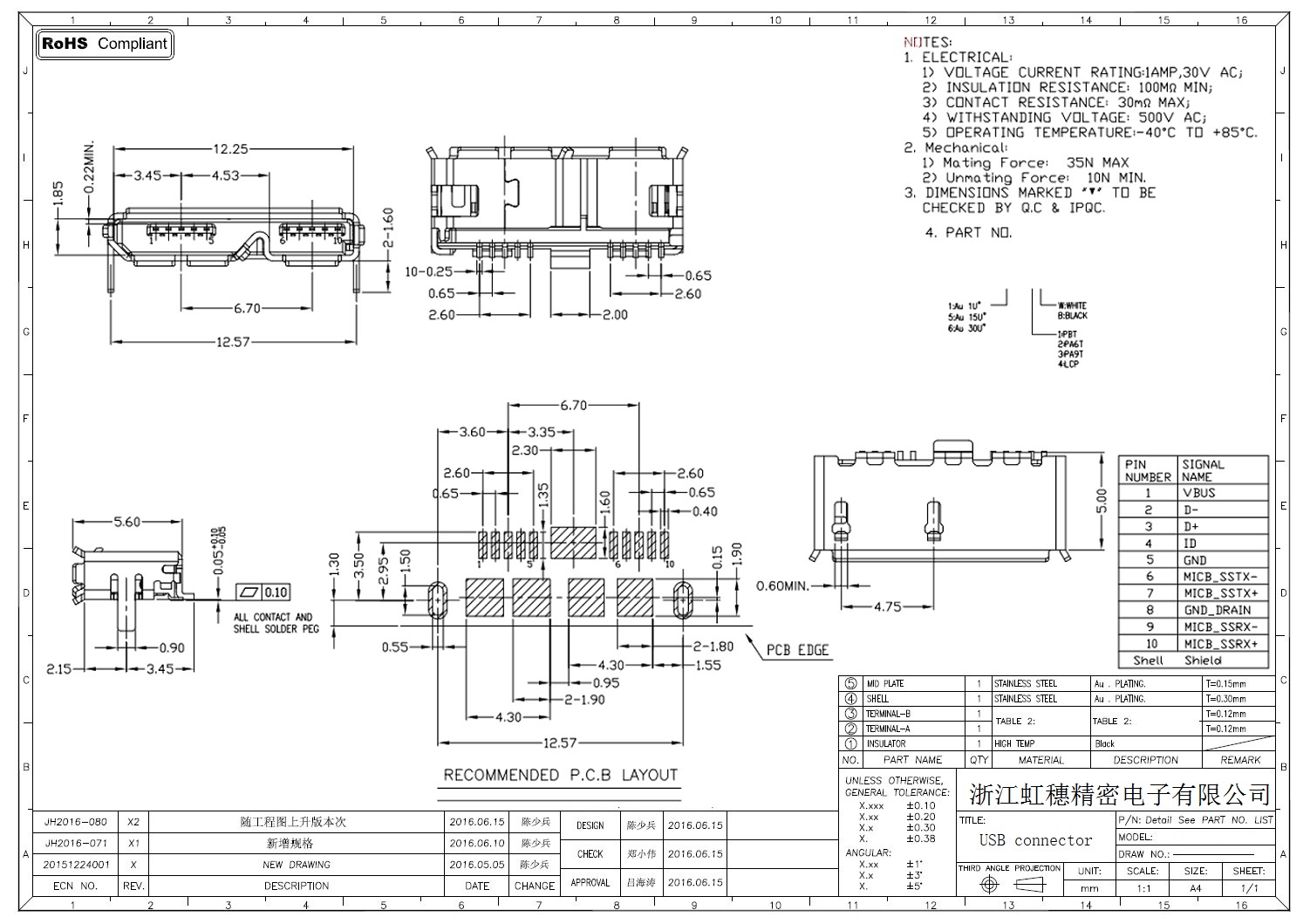 MICRO USB插座技術(shù)參數(shù):