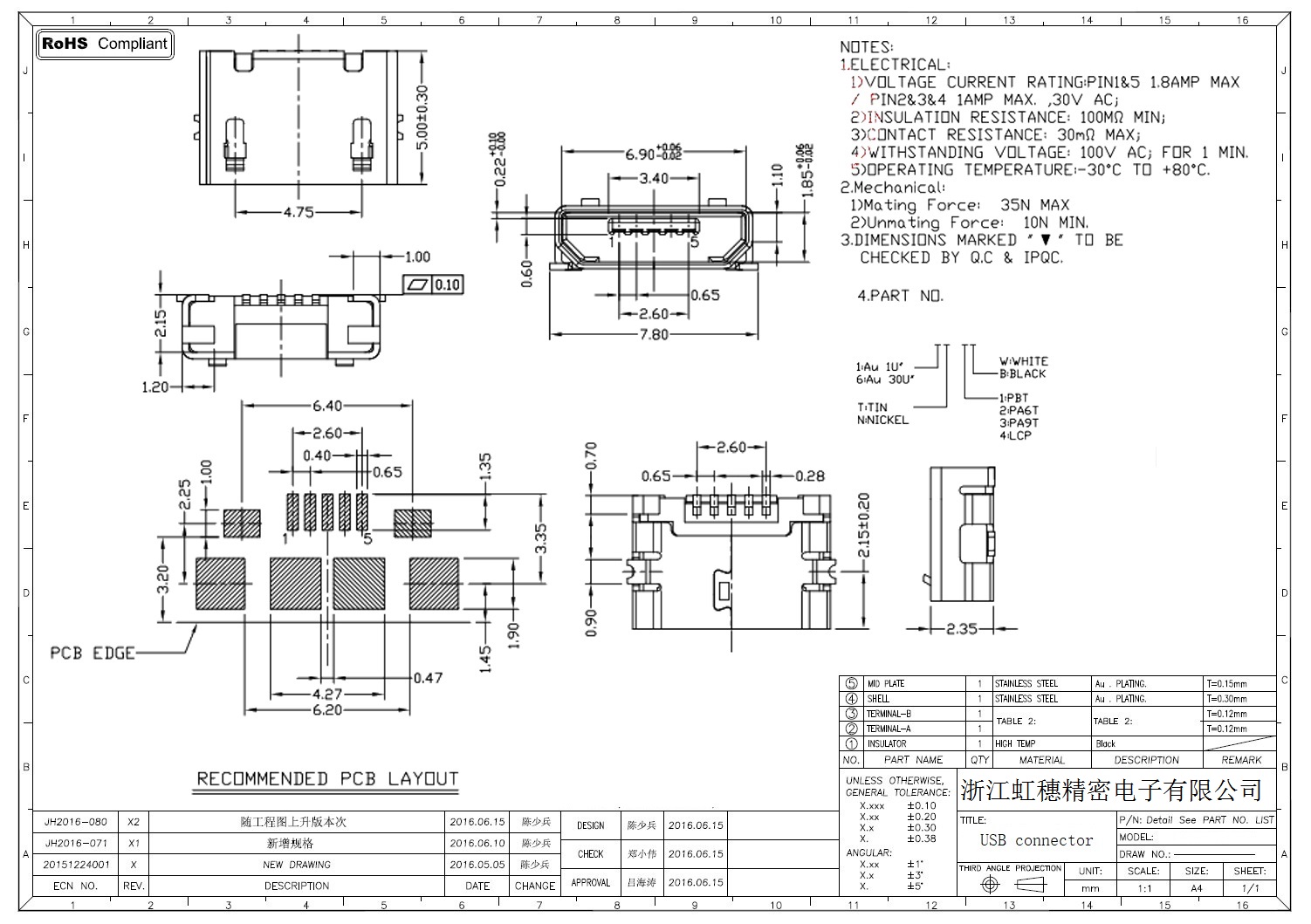 MICRO USB插座技術(shù)參數(shù):