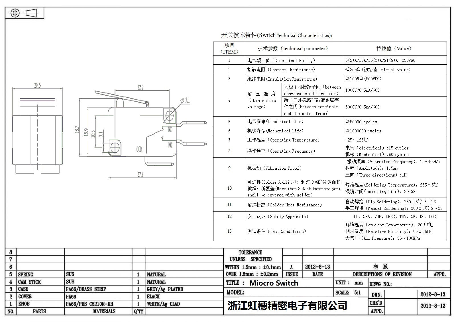 一.請(qǐng)根據(jù)額定值電流、操作負(fù)載、驅(qū)動(dòng)桿的種類、使用溫度等要求選擇合適型號(hào)的開(kāi)關(guān);