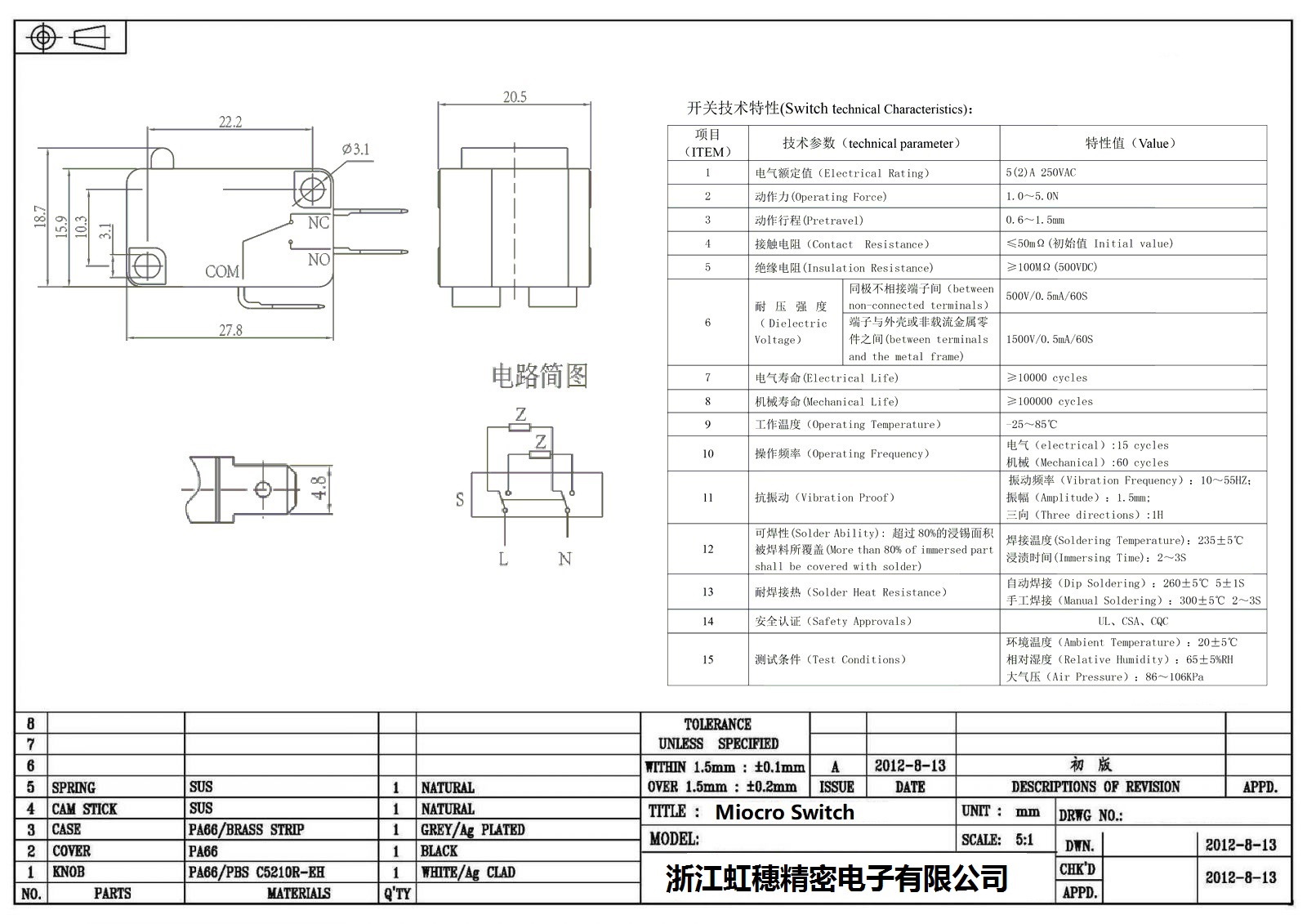 .請根據額定值電流、操作負載、驅動桿的種類、使用溫度等要求選擇合適型號的開關;