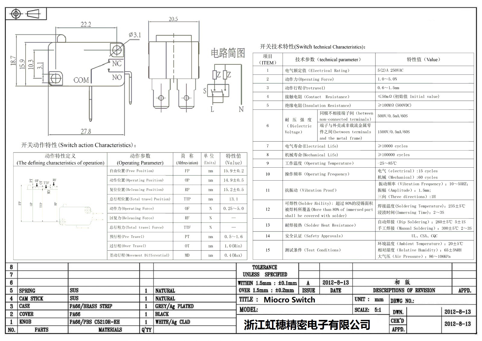 .請根據(jù)額定值電流、操作負(fù)載、驅(qū)動桿的種類、使用溫度等要求選擇合適型號的開關(guān);