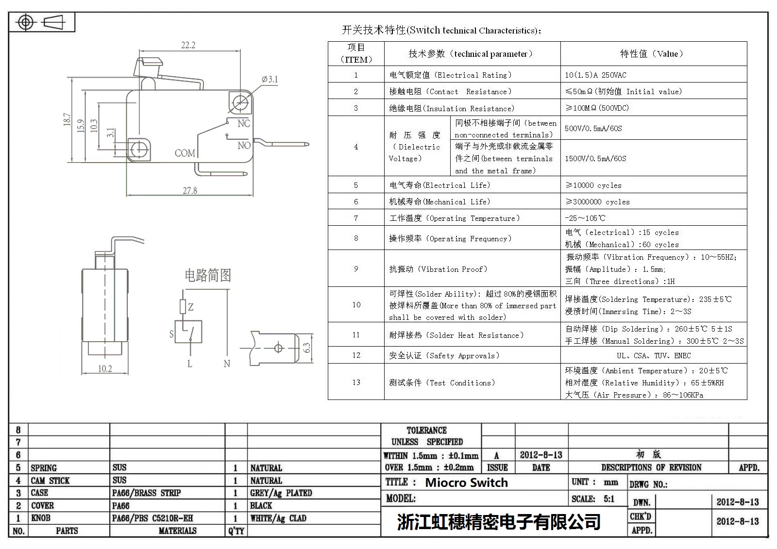 微動開關電氣特性