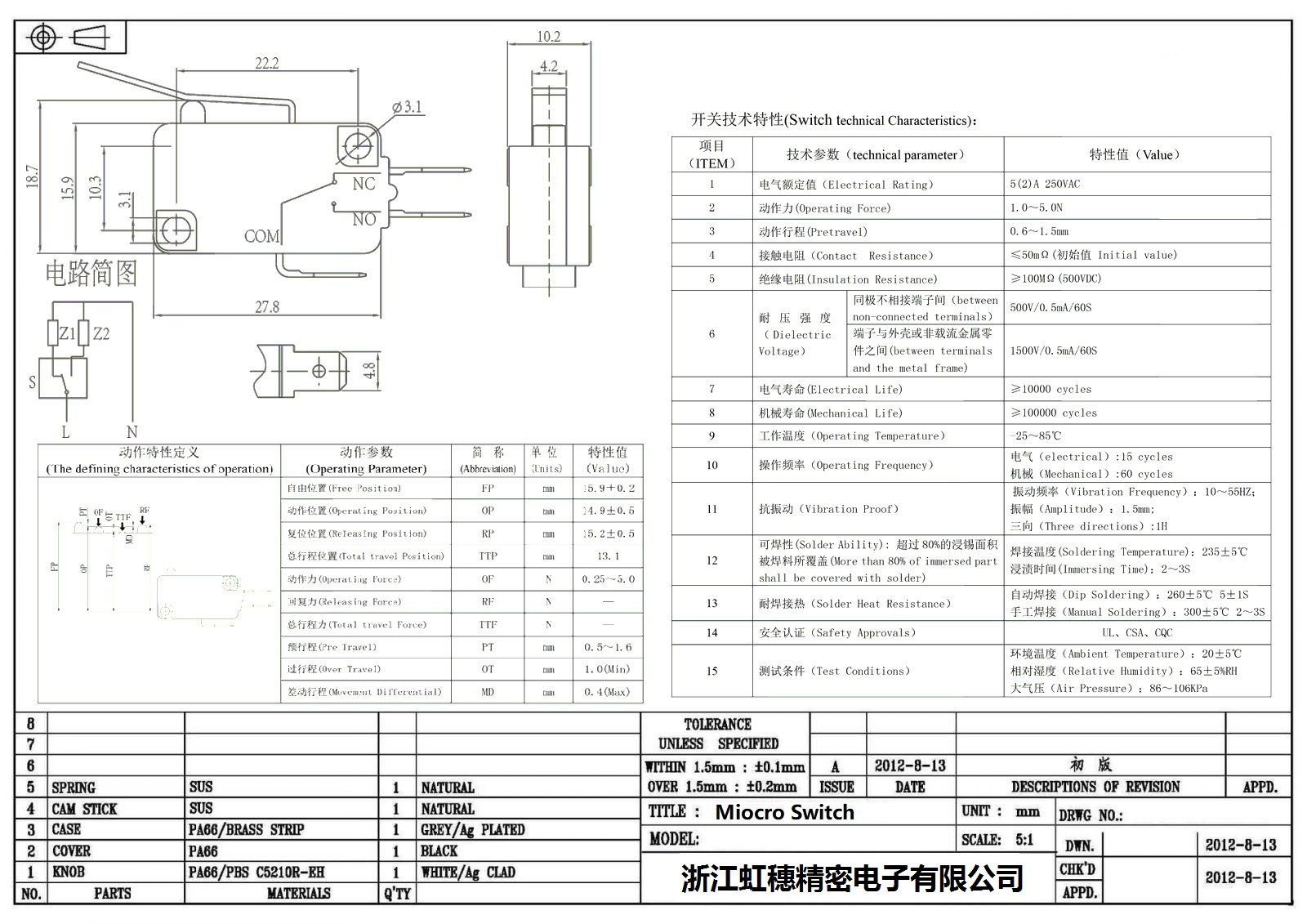微動開關電氣特性
