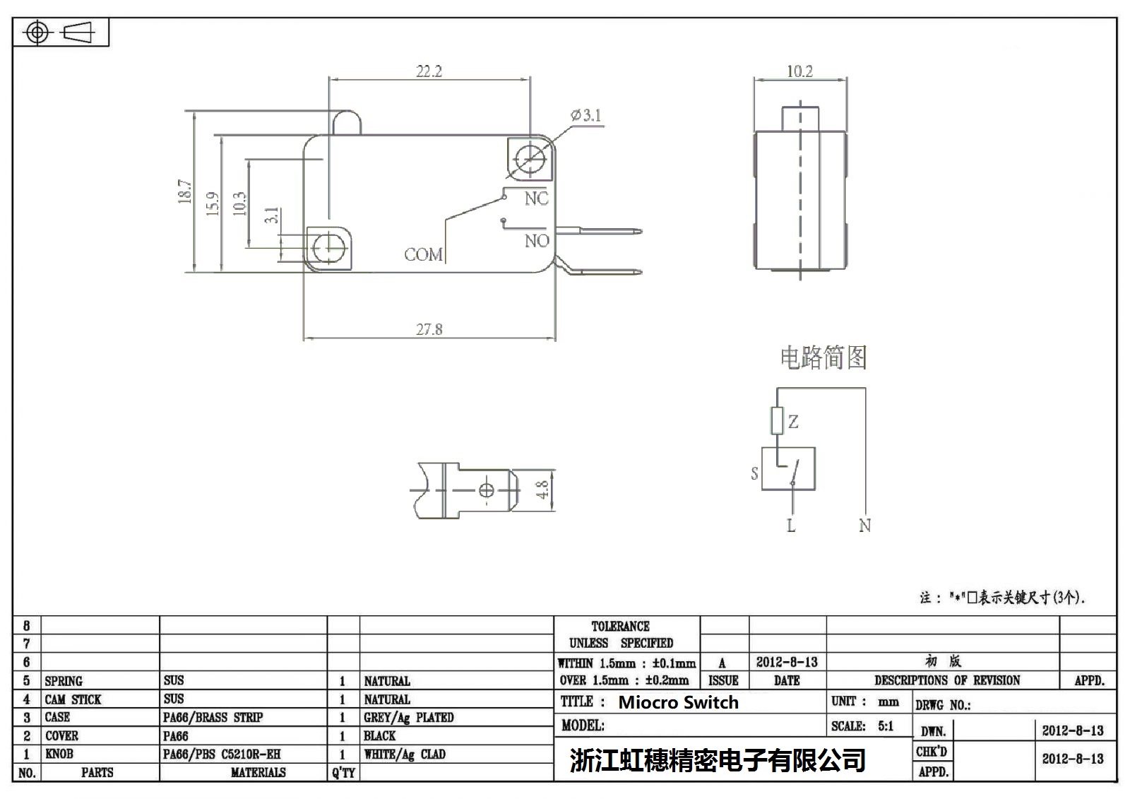 .請根據額定值電流、操作負載、驅動桿的種類、使用溫度等要求選擇合適型號的開關;