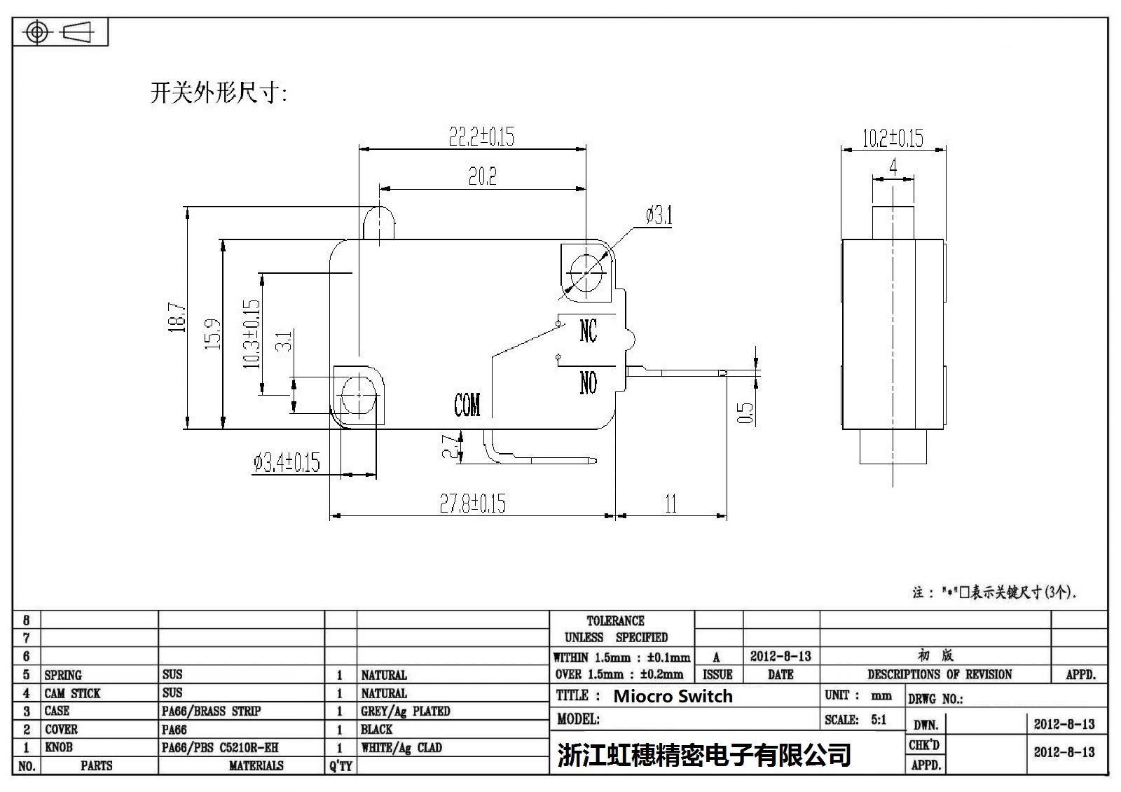 .請根據額定值電流、操作負載、驅動桿的種類、使用溫度等要求選擇合適型號的開關;