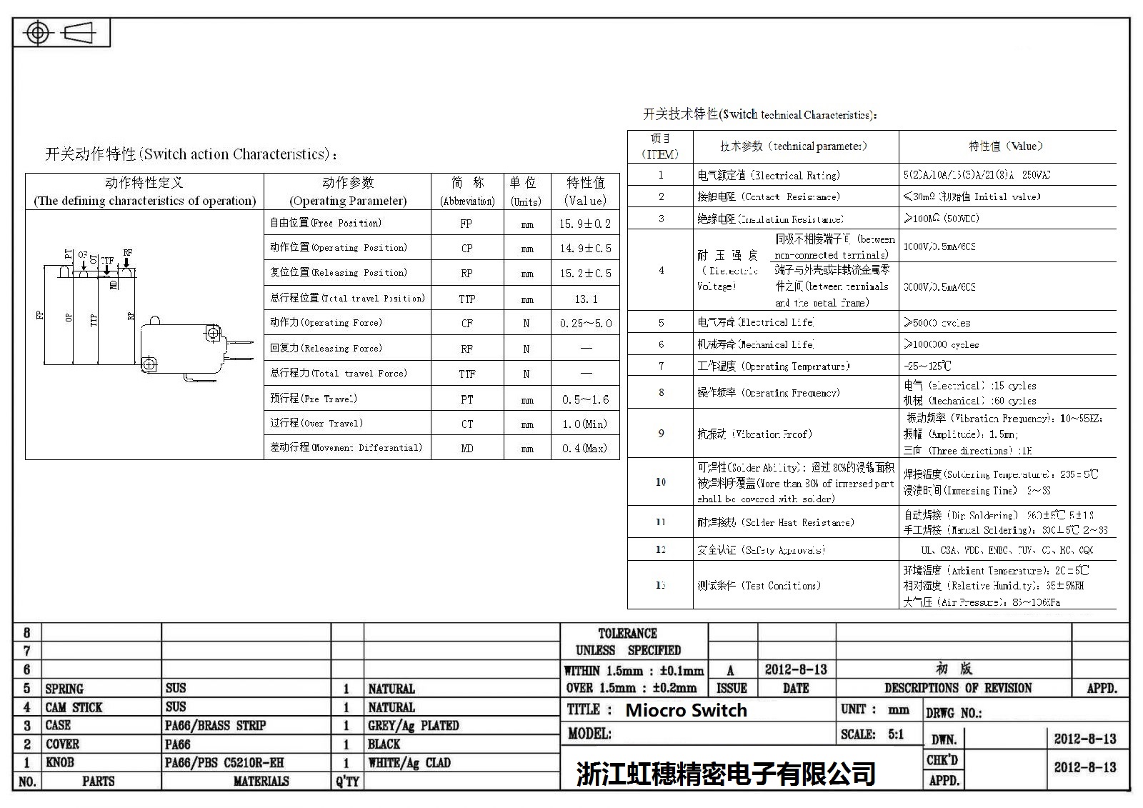 .請根據額定值電流、操作負載、驅動桿的種類、使用溫度等要求選擇合適型號的開關;