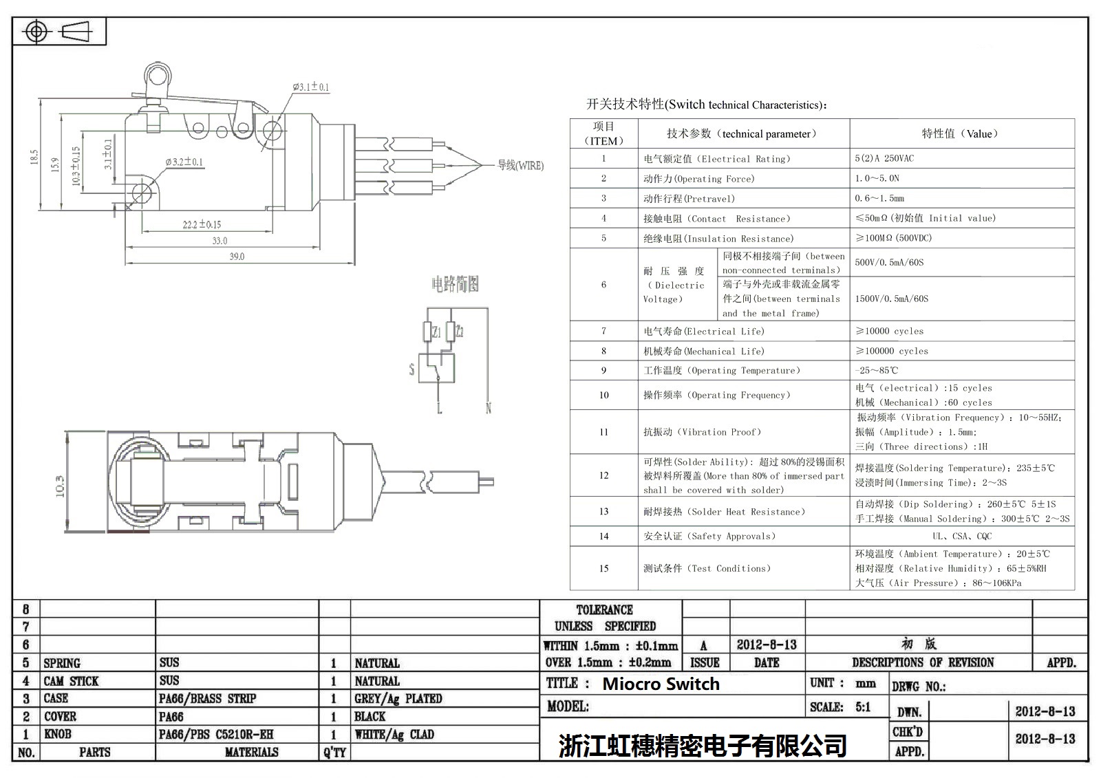 .請根據額定值電流、操作負載、驅動桿的種類、使用溫度等要求選擇合適型號的開關;