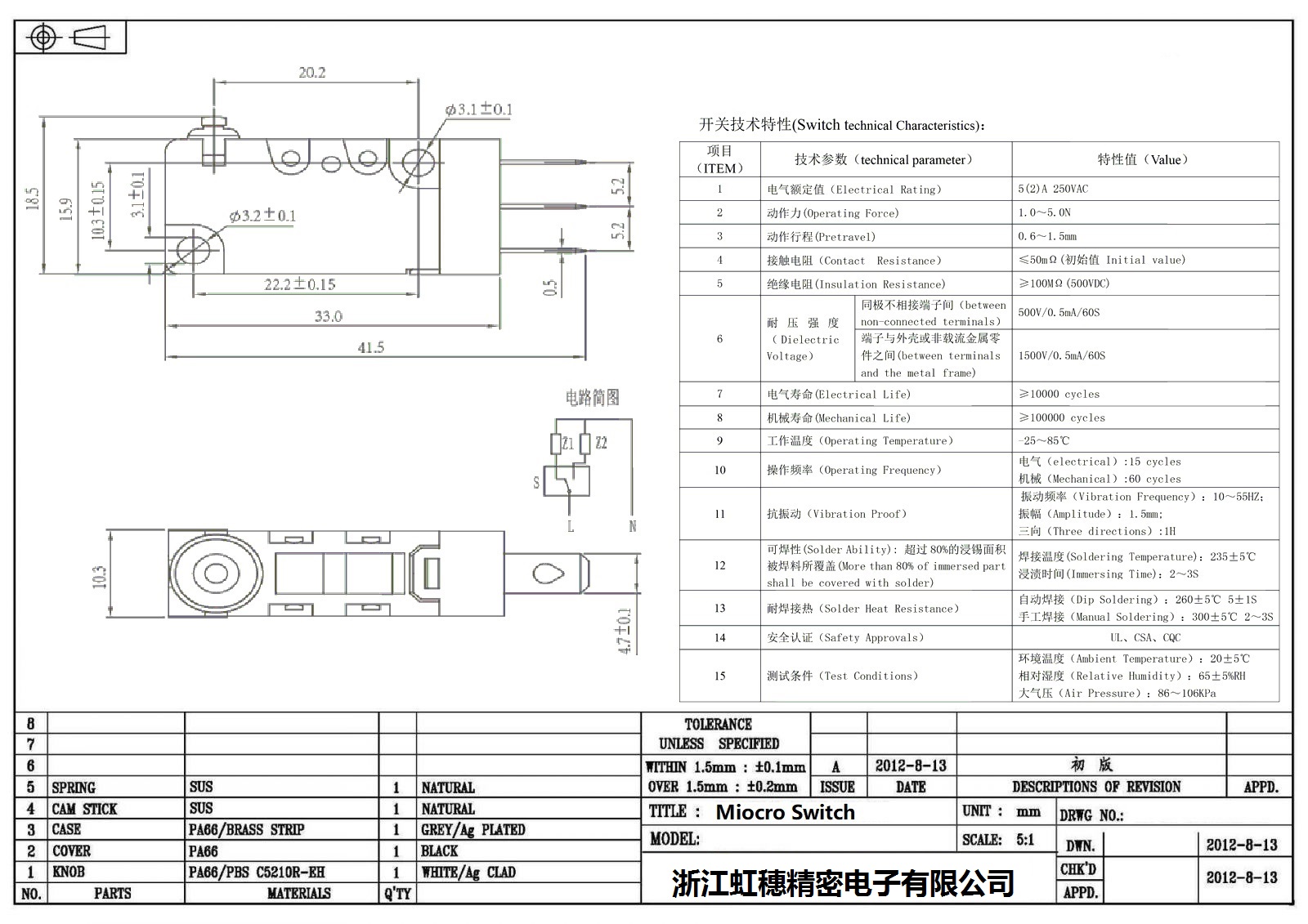 .請根據額定值電流、操作負載、驅動桿的種類、使用溫度等要求選擇合適型號的開關;