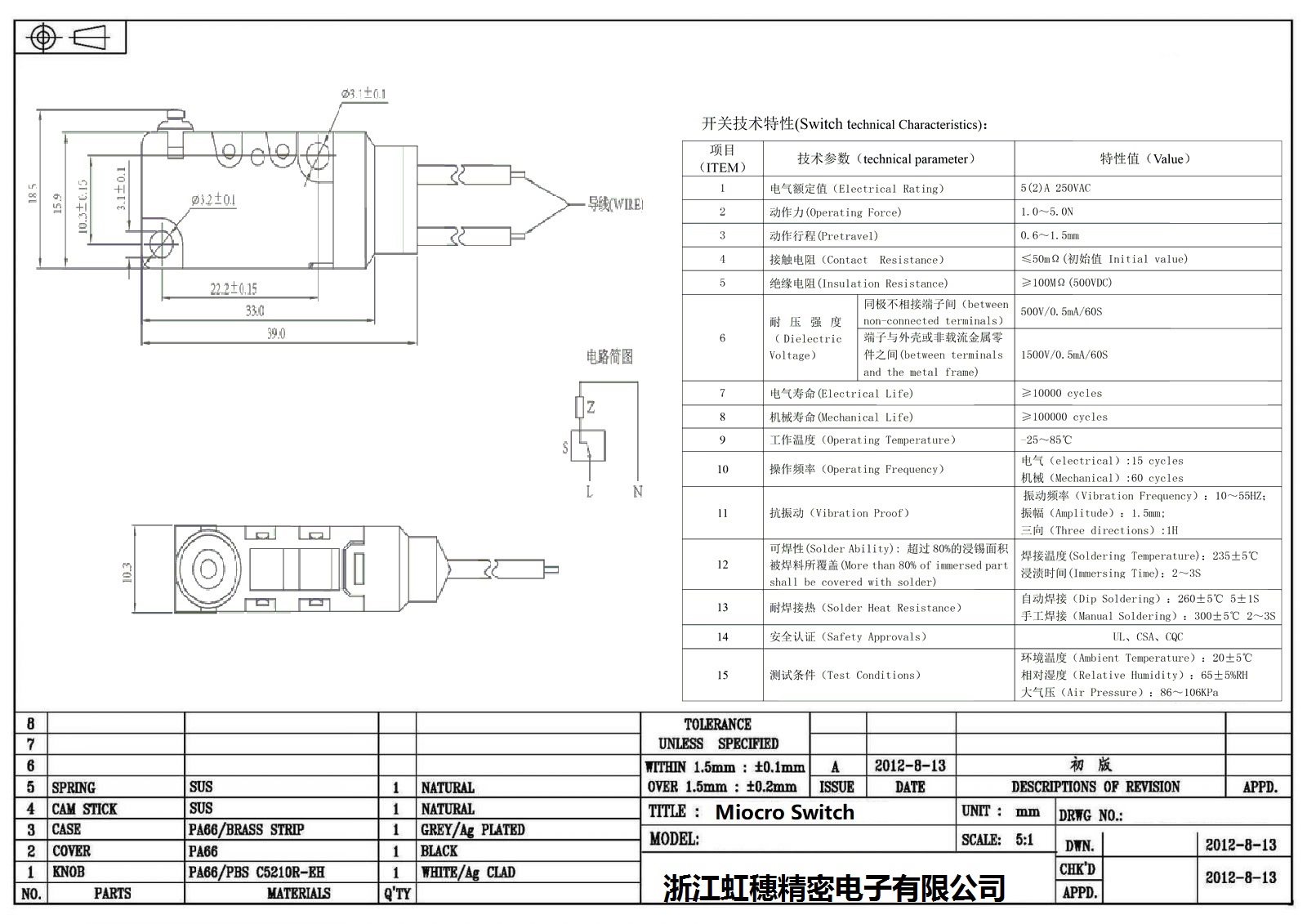 .請根據額定值電流、操作負載、驅動桿的種類、使用溫度等要求選擇合適型號的開關;