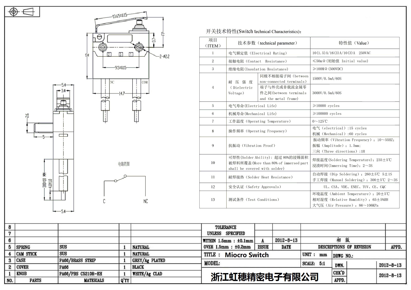 .請根據額定值電流、操作負載、驅動桿的種類、使用溫度等要求選擇合適型號的開關;