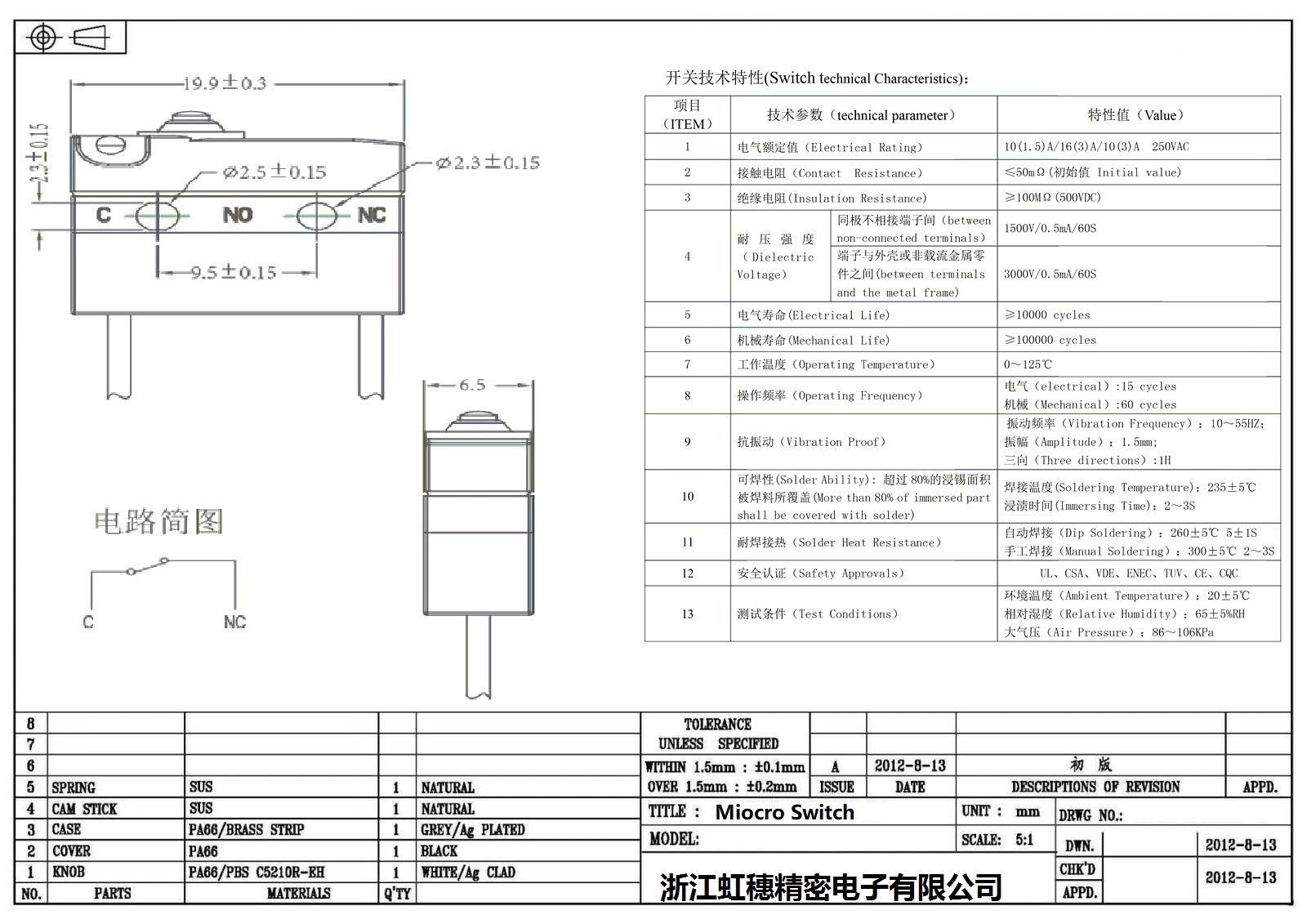 微動開關電氣特性