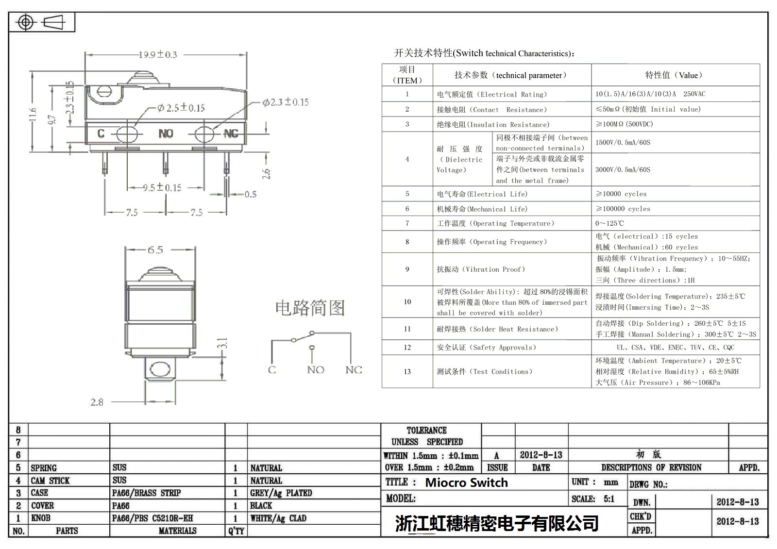 微動開關電氣特性