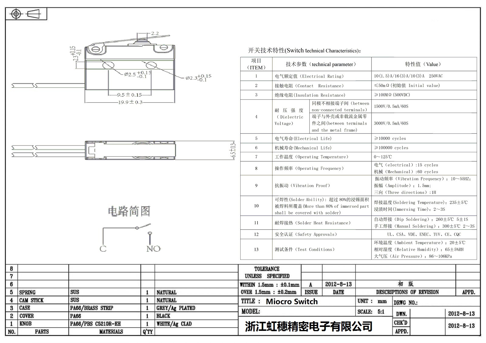 .請(qǐng)根據(jù)額定值電流、操作負(fù)載、驅(qū)動(dòng)桿的種類、使用溫度等要求選擇合適型號(hào)的開關(guān);