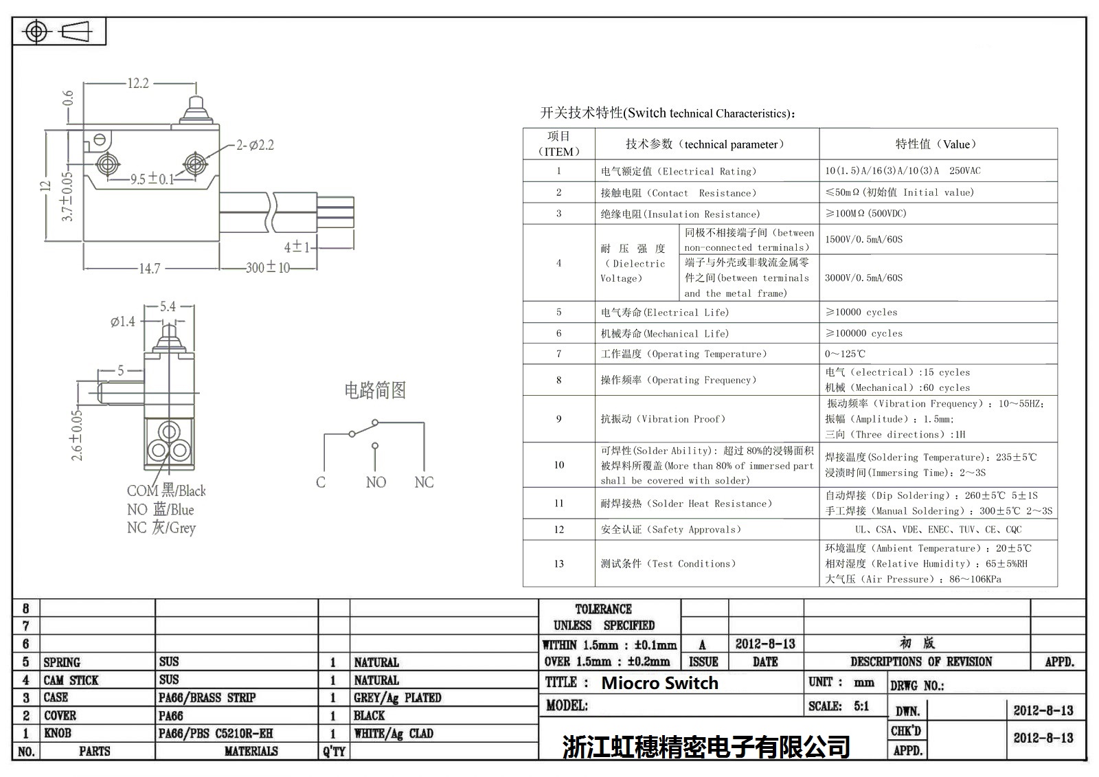 微動開關電氣特性