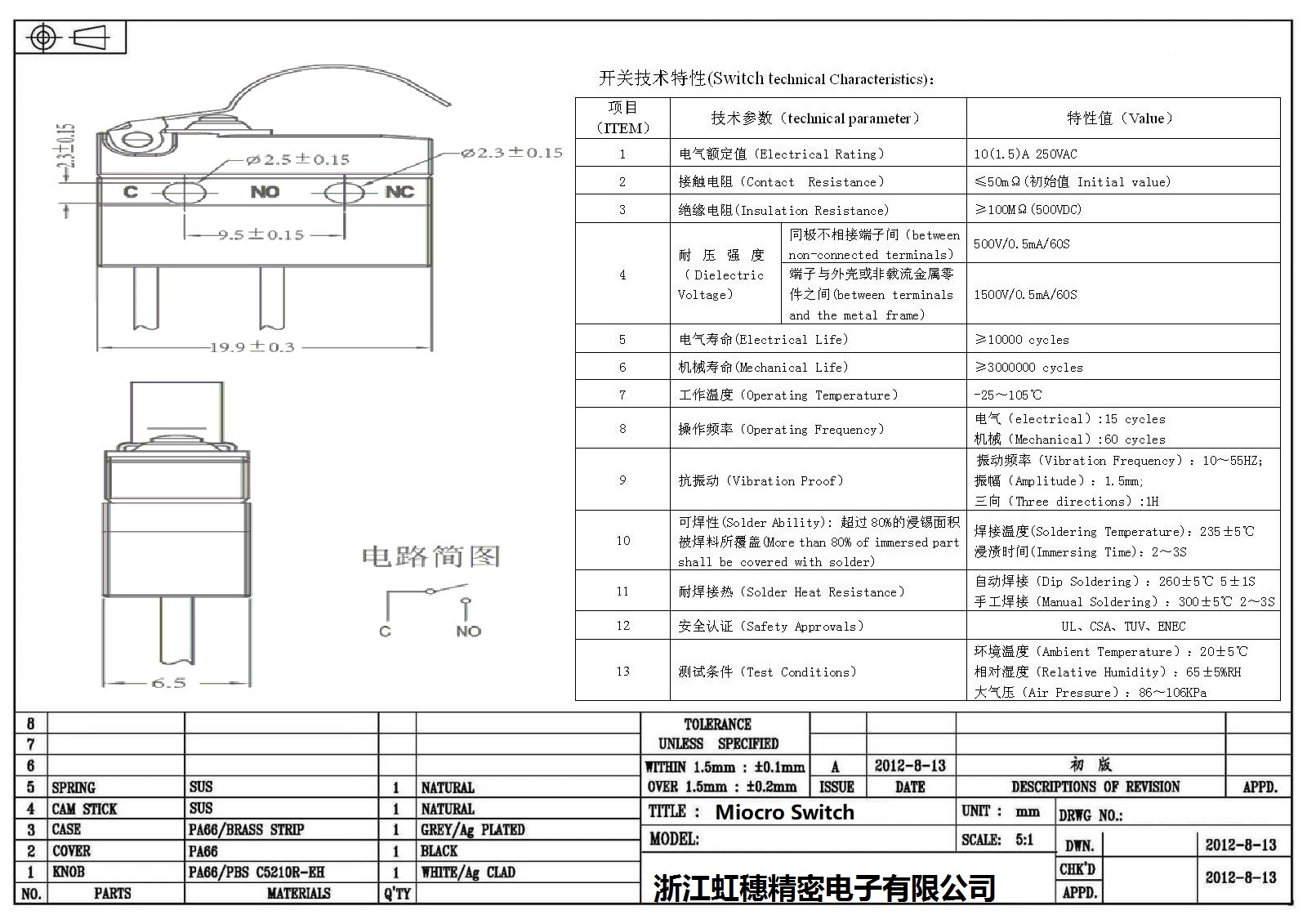 6.機(jī)械壽命:3,000,000Cycles