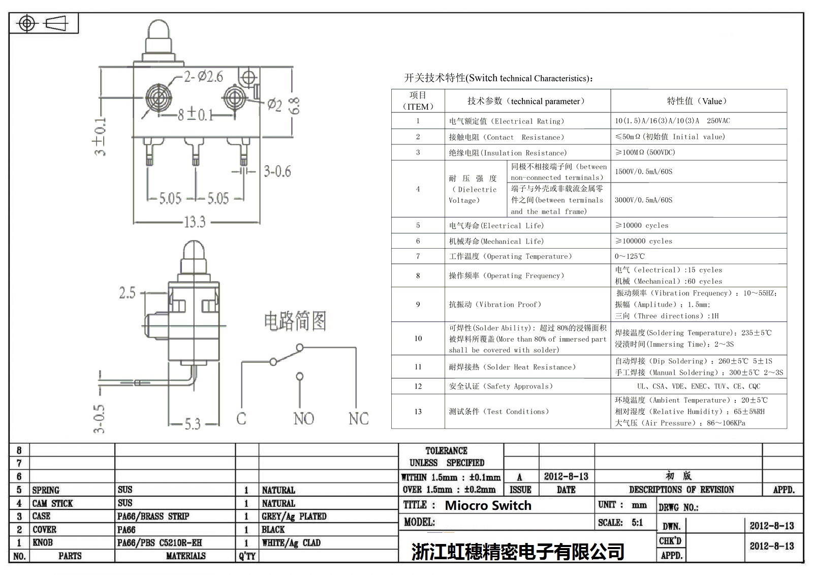 .請根據額定值電流、操作負載、驅動桿的種類、使用溫度等要求選擇合適型號的開關;