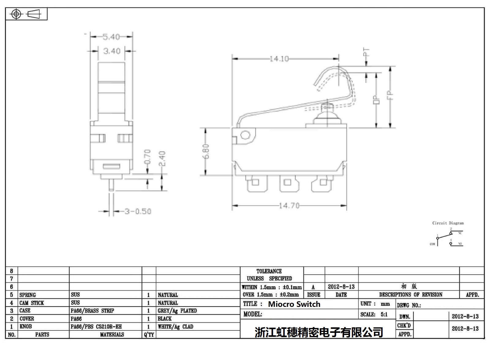 .請(qǐng)根據(jù)額定值電流、操作負(fù)載、驅(qū)動(dòng)桿的種類、使用溫度等要求選擇合適型號(hào)的開關(guān);