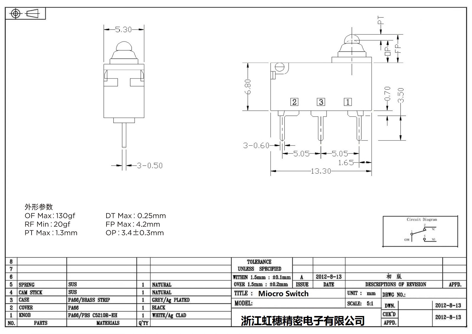 微動開關電氣特性