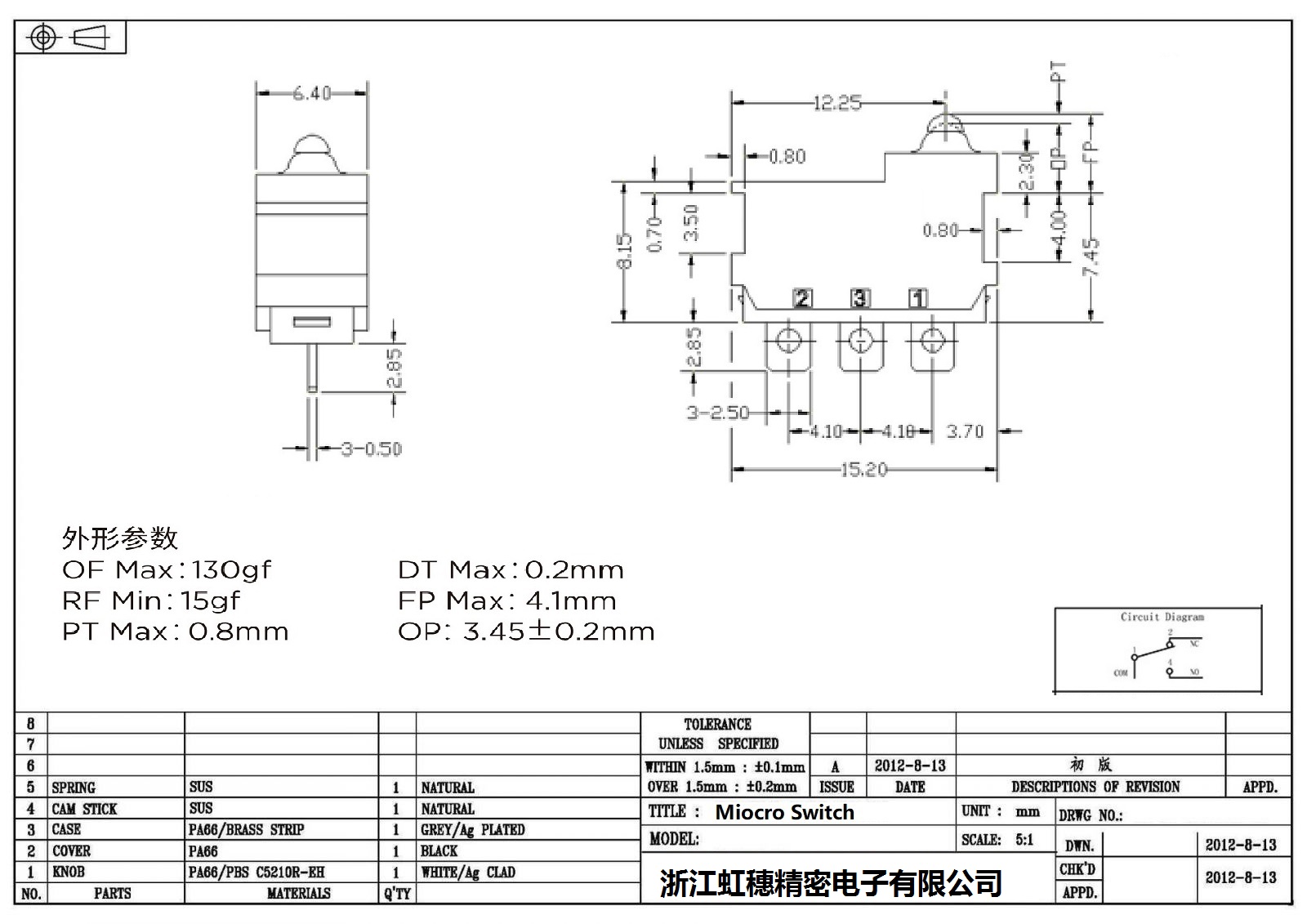 .請根據額定值電流、操作負載、驅動桿的種類、使用溫度等要求選擇合適型號的開關;