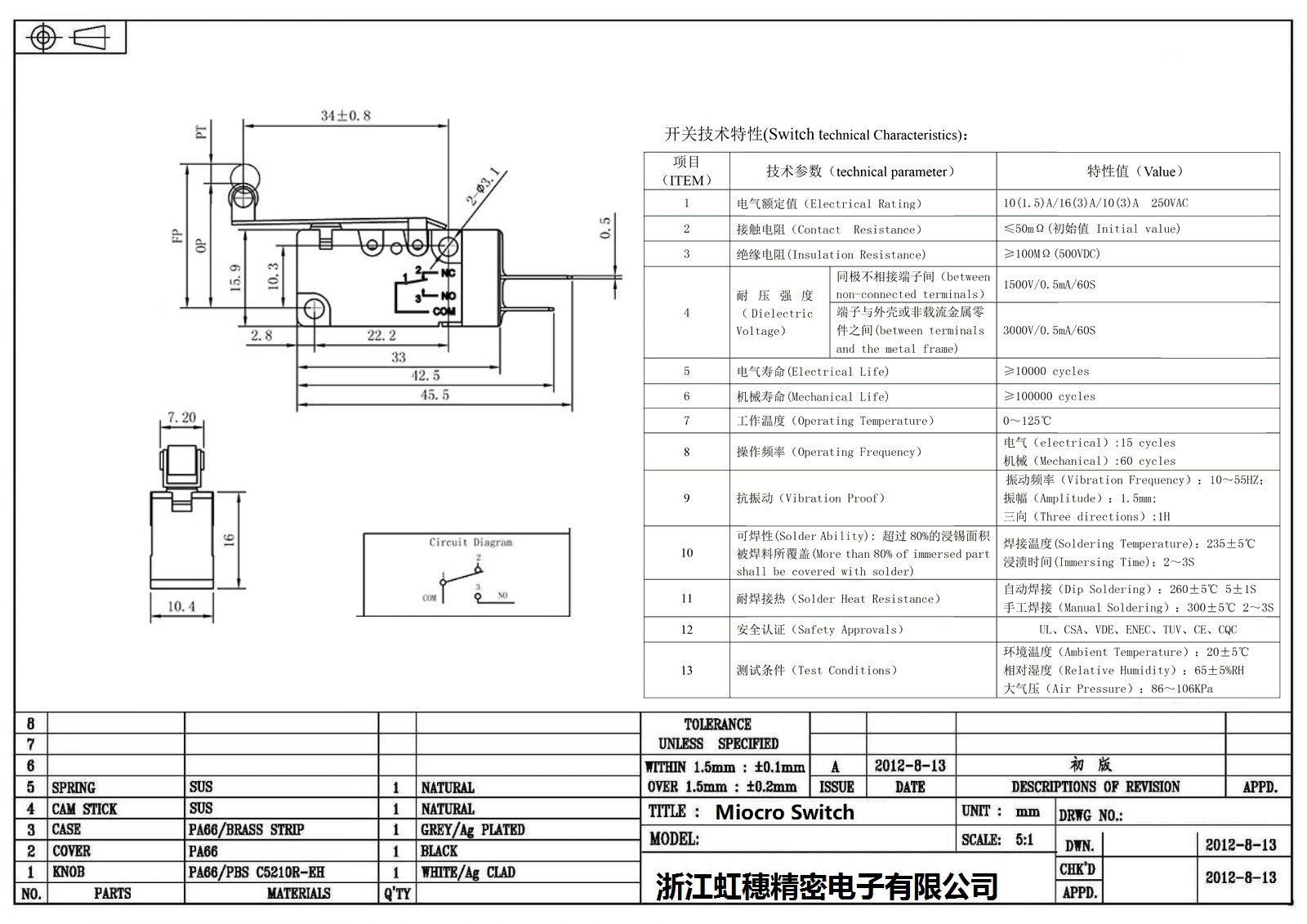 微動開關電氣特性