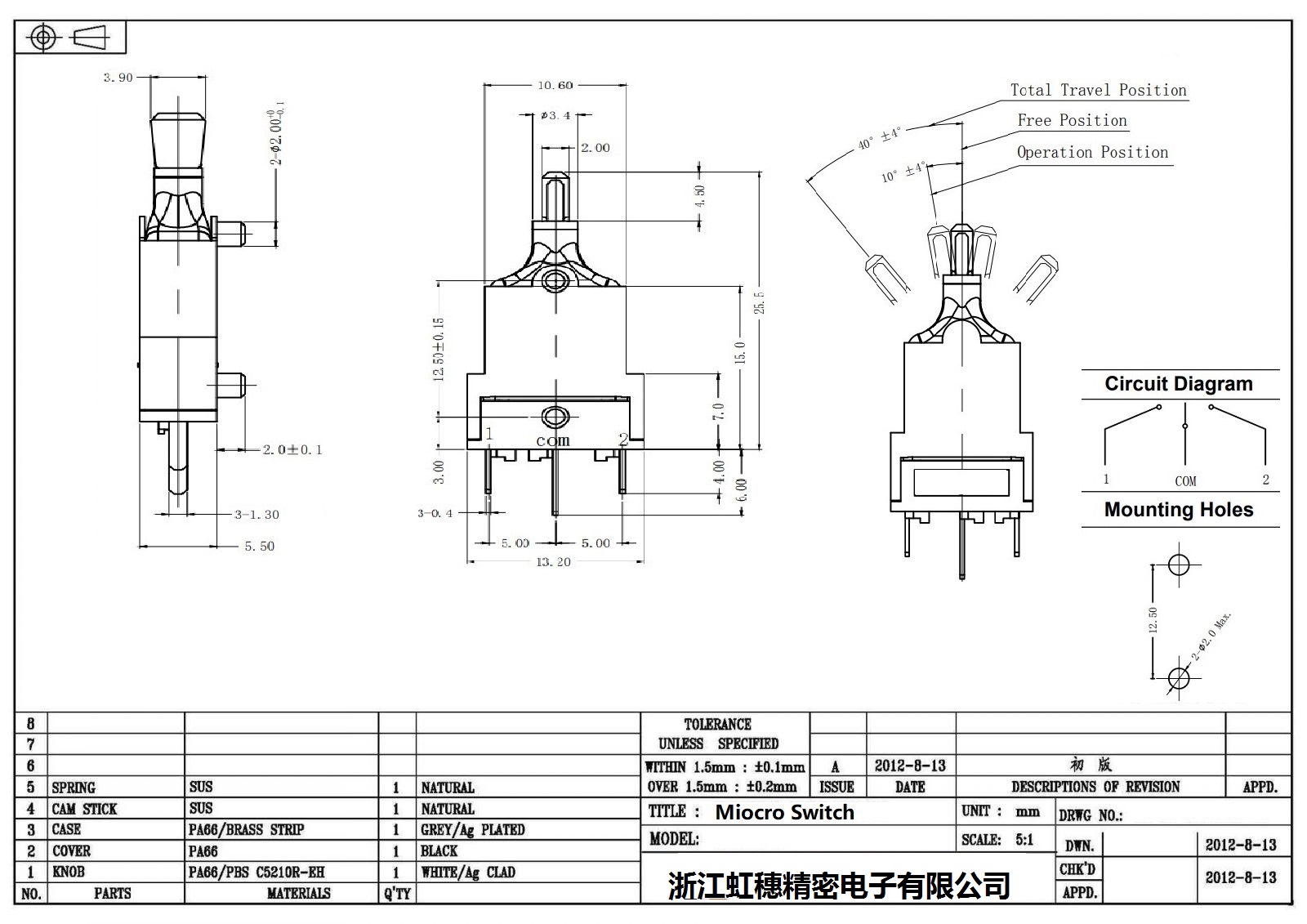 .請根據額定值電流、操作負載、驅動桿的種類、使用溫度等要求選擇合適型號的開關;