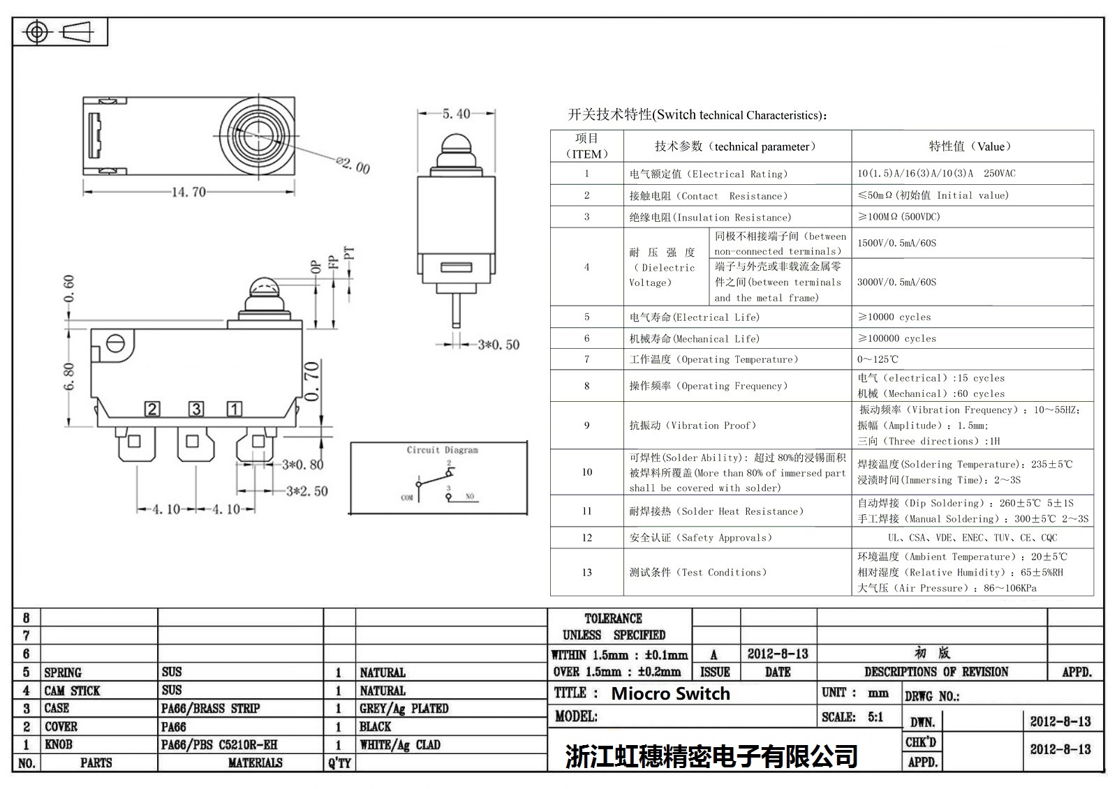 一.請根據額定值電流、操作負載、驅動桿的種類、使用溫度等要求選擇合適型號的開關;