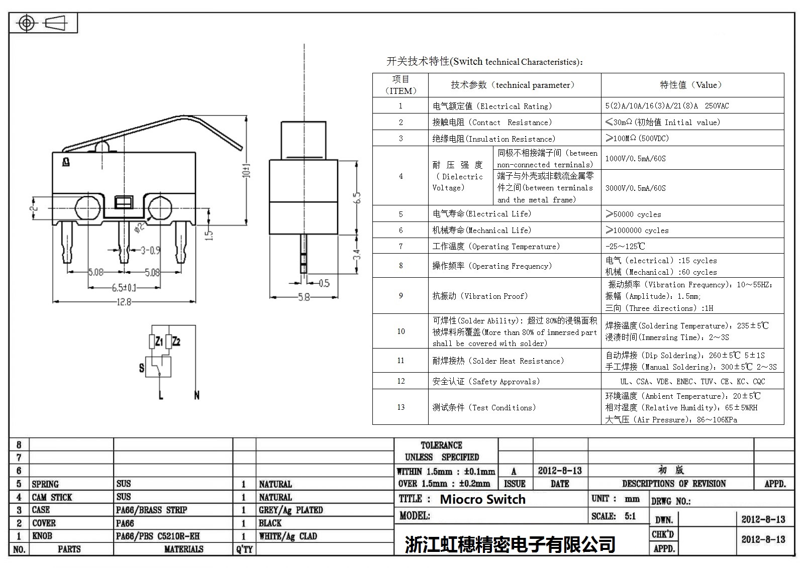 .請根據額定值電流、操作負載、驅動桿的種類、使用溫度等要求選擇合適型號的開關;