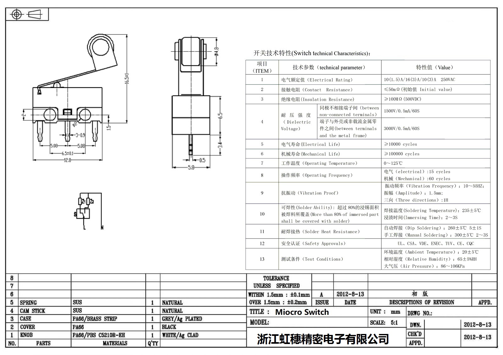 微動開關電氣特性