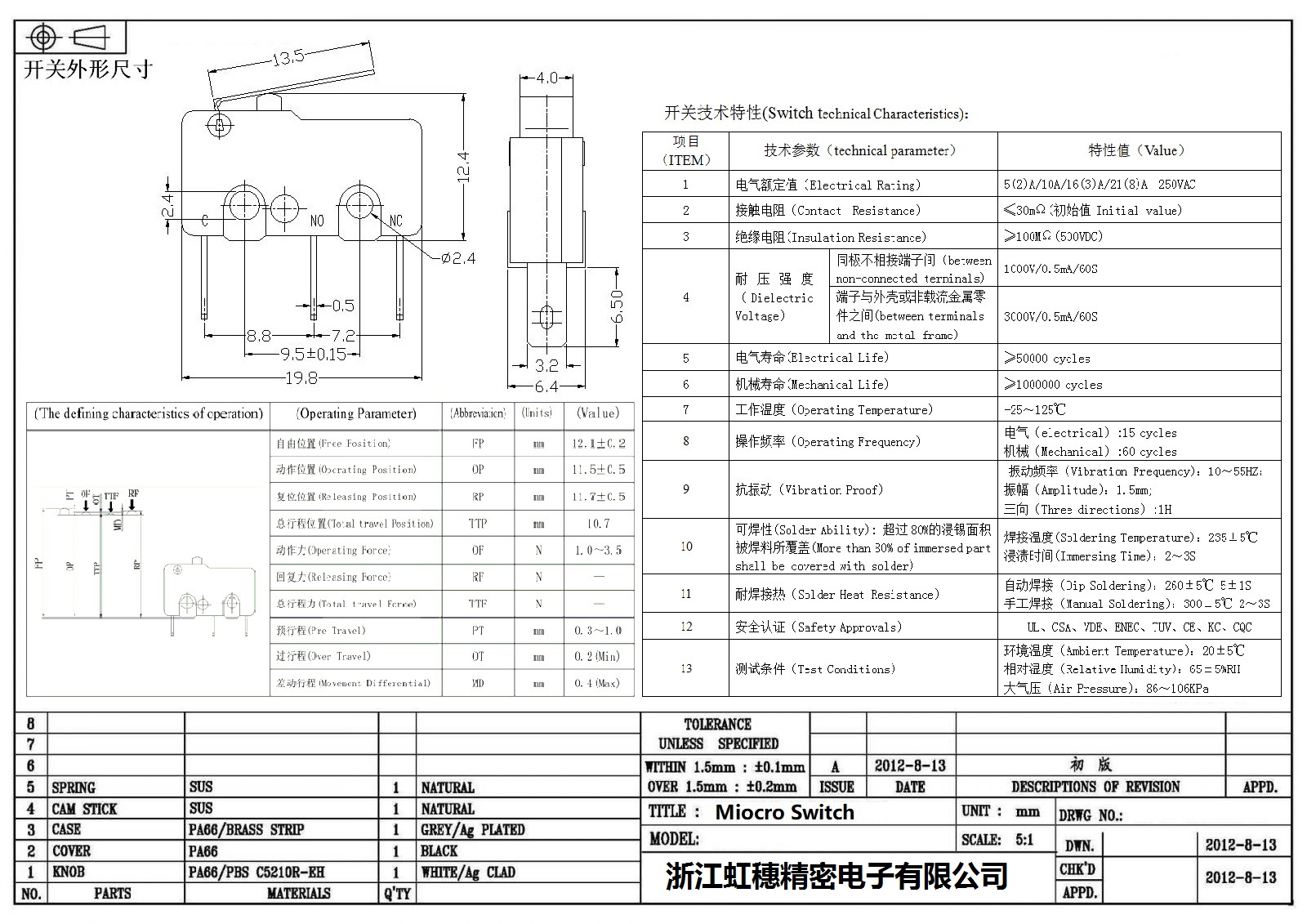 微動(dòng)開(kāi)關(guān)電氣特性