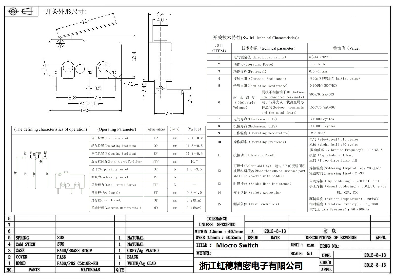 一.請(qǐng)根據(jù)額定值電流、操作負(fù)載、驅(qū)動(dòng)桿的種類、使用溫度等要求選擇合適型號(hào)的開關(guān);
