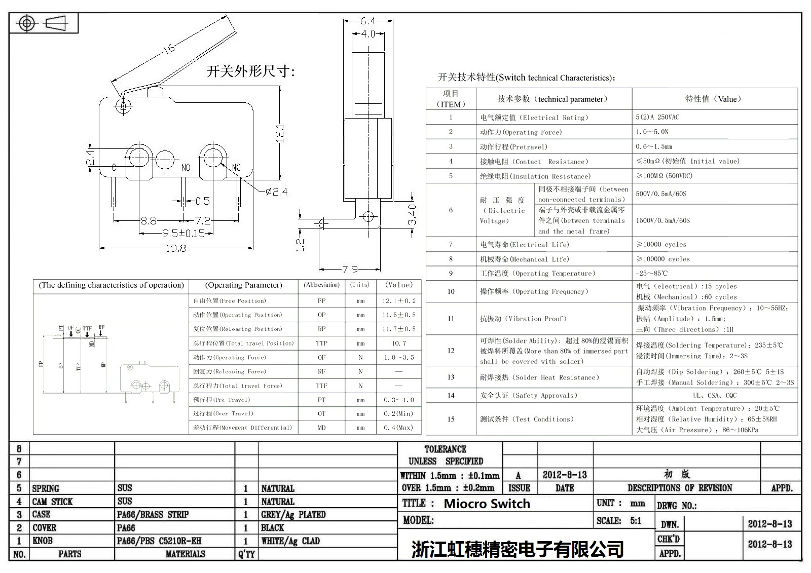 微動開關電氣特性