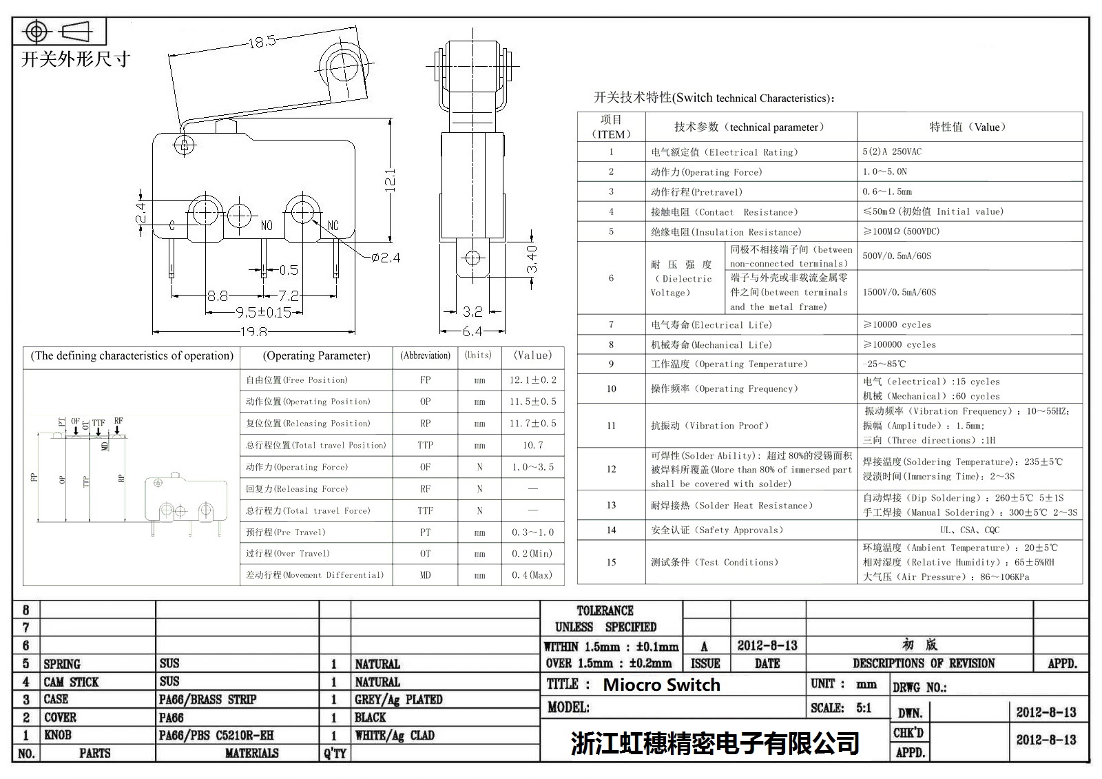 .請根據額定值電流、操作負載、驅動桿的種類、使用溫度等要求選擇合適型號的開關;