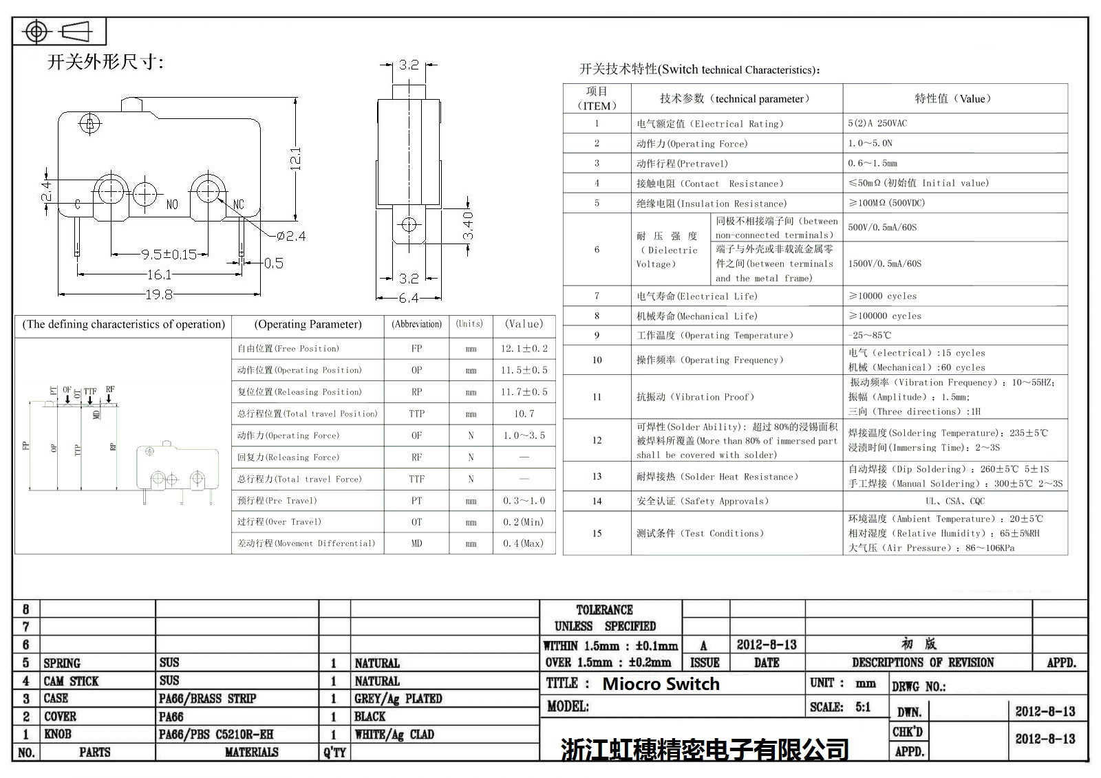 .請根據額定值電流、操作負載、驅動桿的種類、使用溫度等要求選擇合適型號的開關;