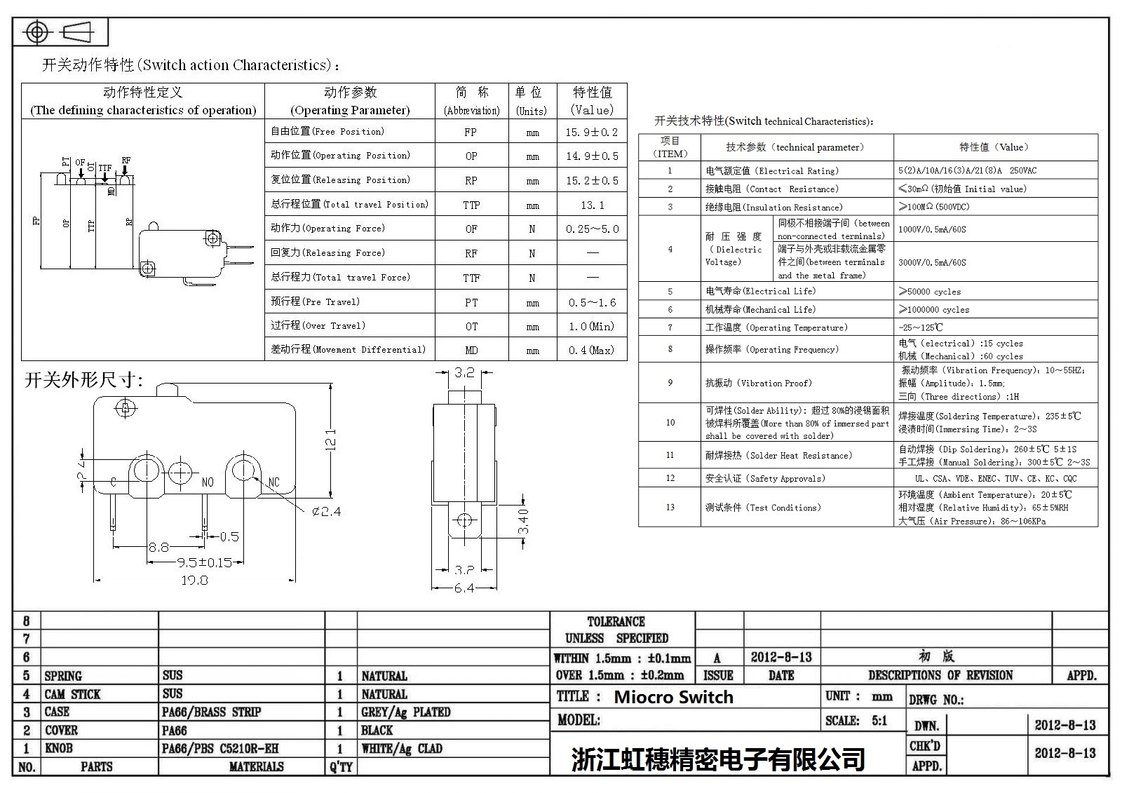微動開關電氣特性