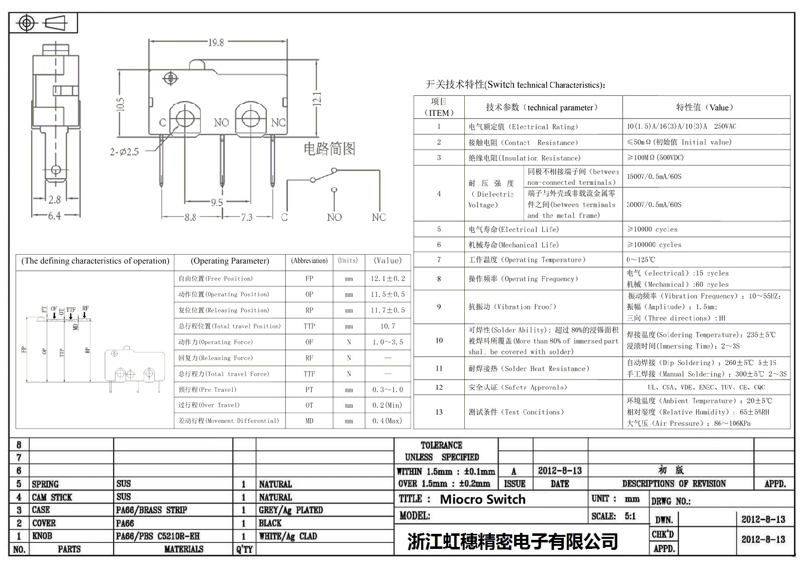 .請根據額定值電流、操作負載、驅動桿的種類、使用溫度等要求選擇合適型號的開關;