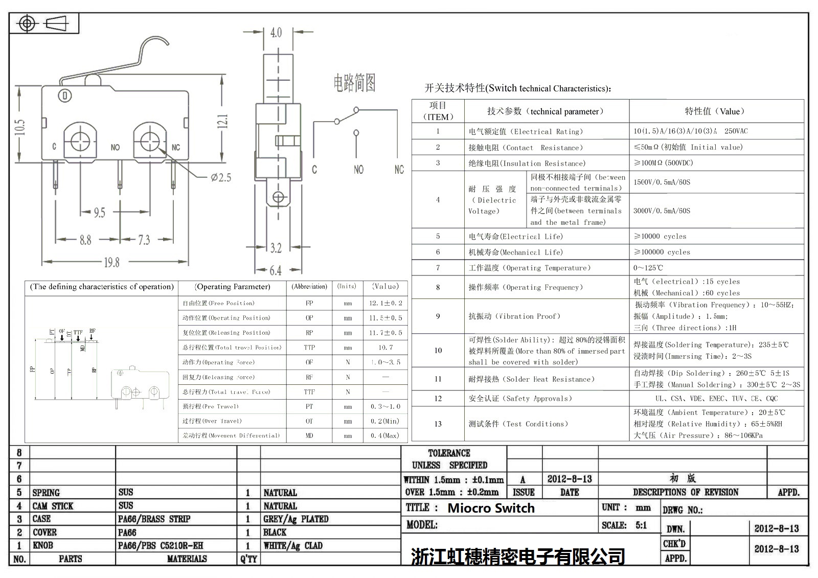 微動(dòng)開關(guān)電氣特性