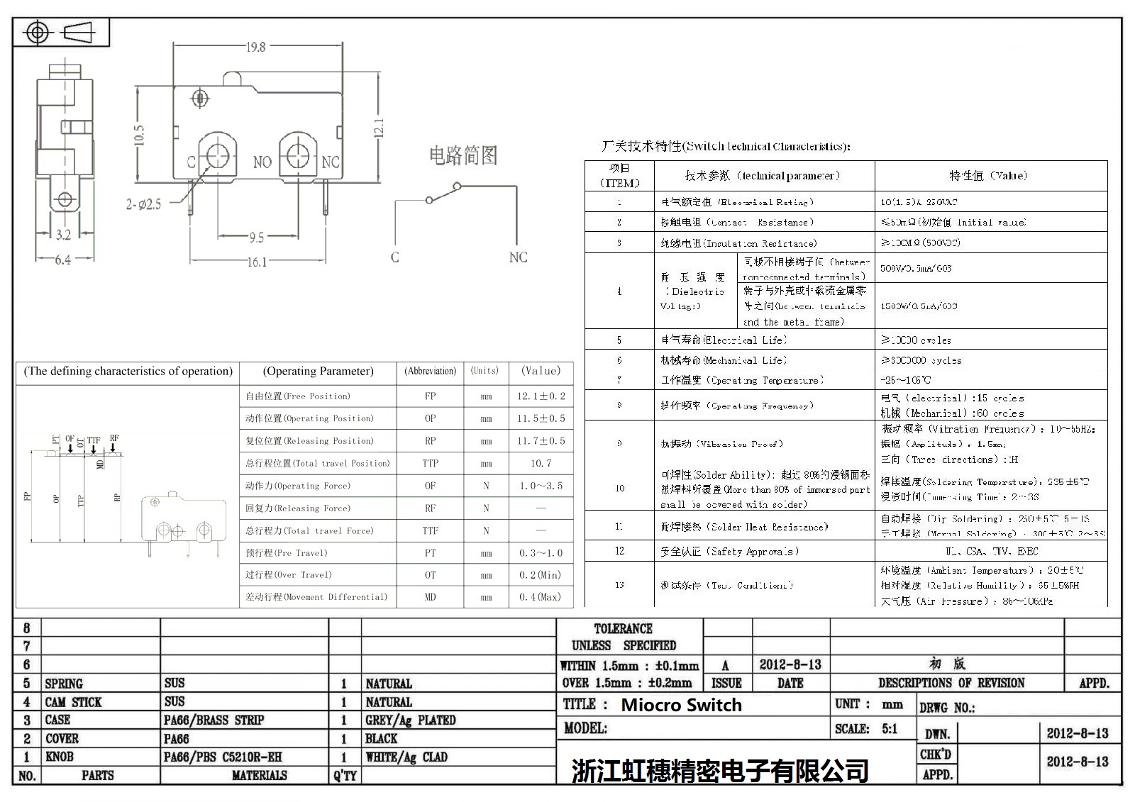 .請根據額定值電流、操作負載、驅動桿的種類、使用溫度等要求選擇合適型號的開關;