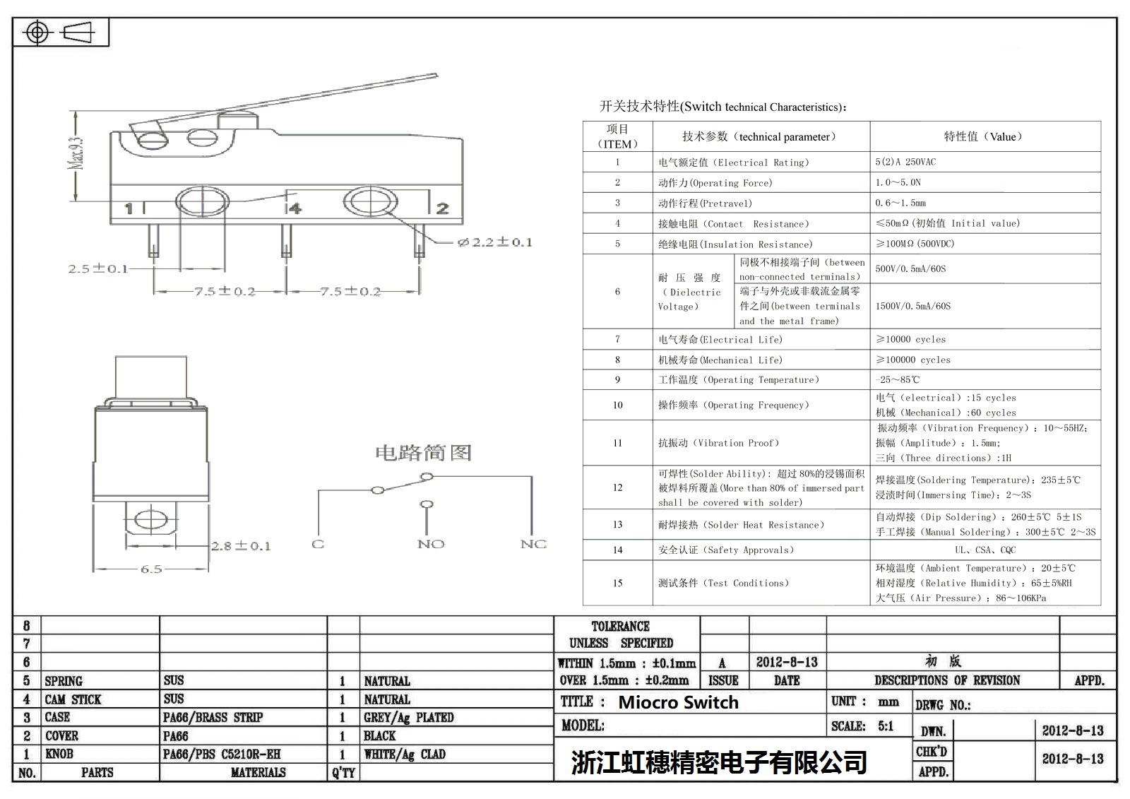 微動(dòng)開(kāi)關(guān)電氣特性