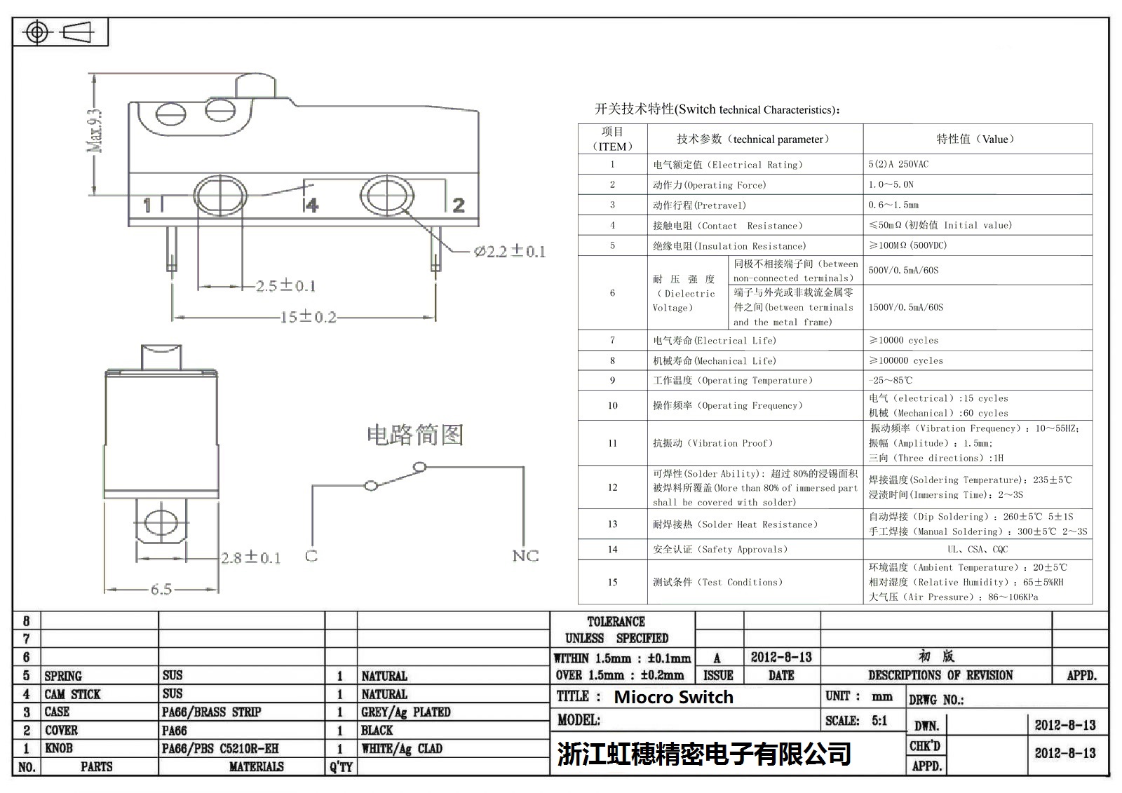 微動開關電氣特性